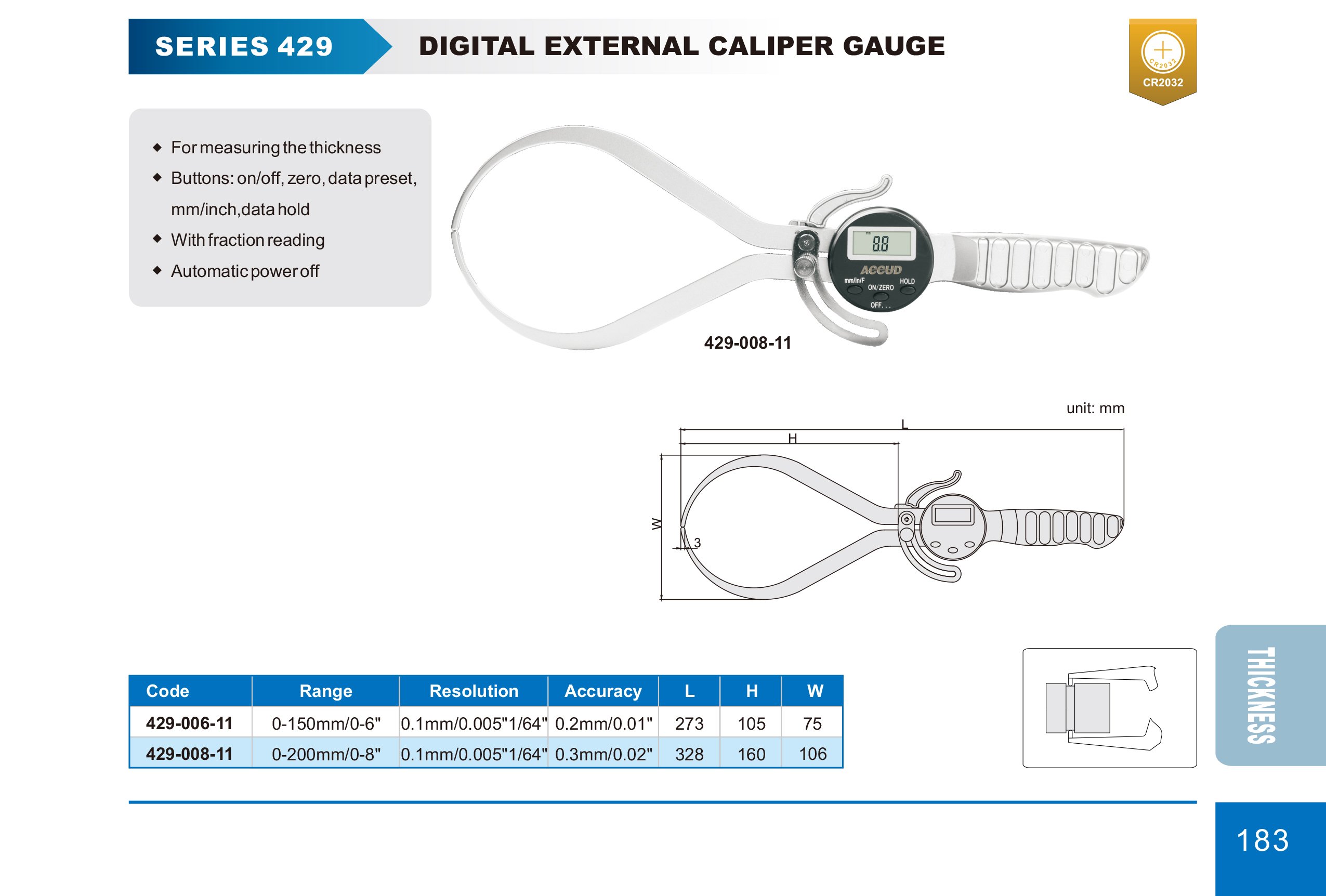 ACCUD 429-006-11 digitální úchylkoměr pro vnější měření 0-150mm ( 0.1mm )