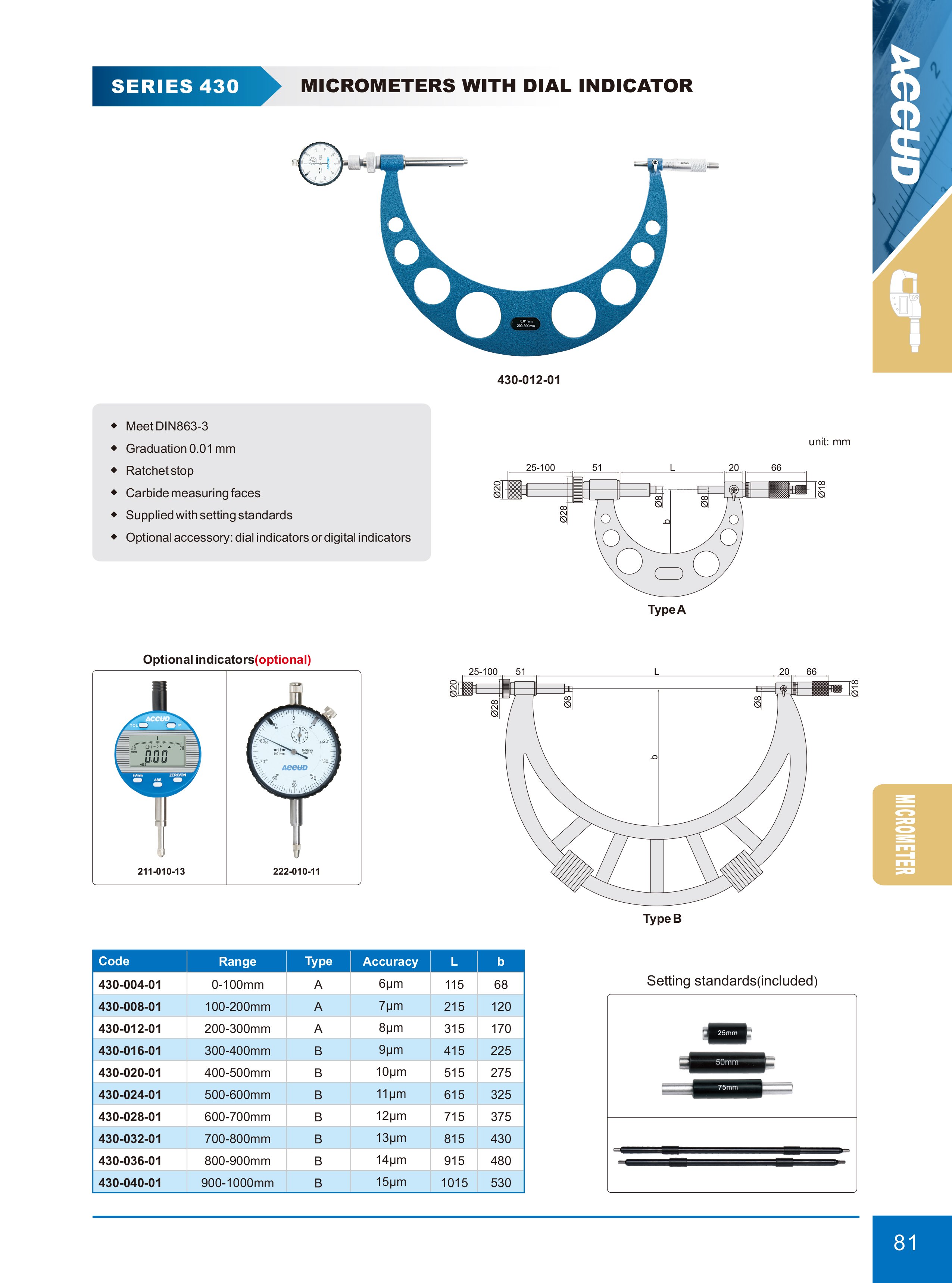 ACCUD 430-008-01 mikrometr 100-200mm s číselníkovým úchylkoměrem (0.01mm)
