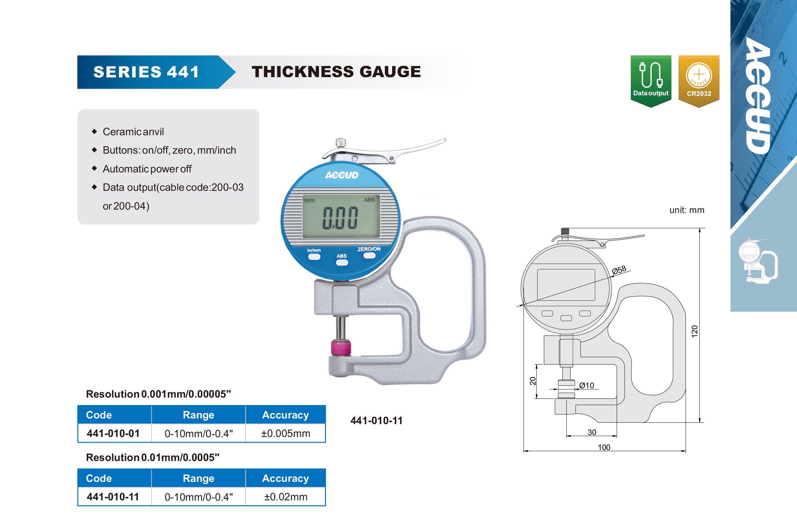ACCUD 441-010-11 digitální tloušťkomer s úchylkoměrem 0-10mm/0-0.4"