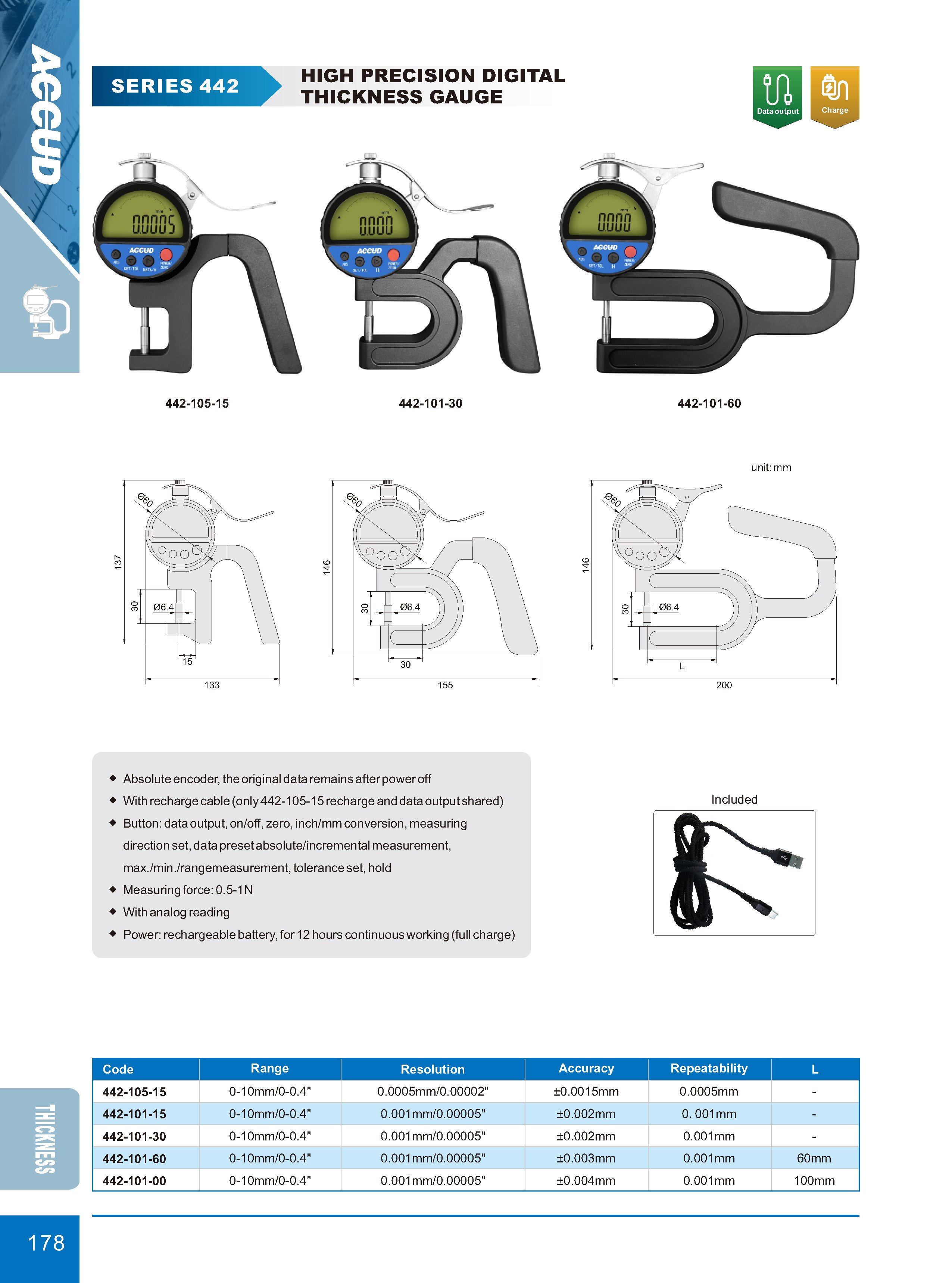 ACCUD 442-105-15 vysoce přesný digitální tloušťkoměr