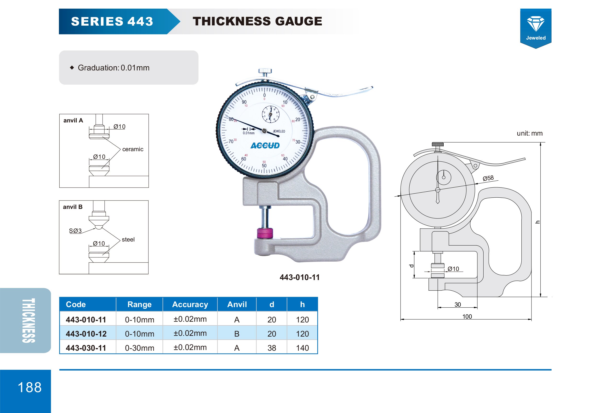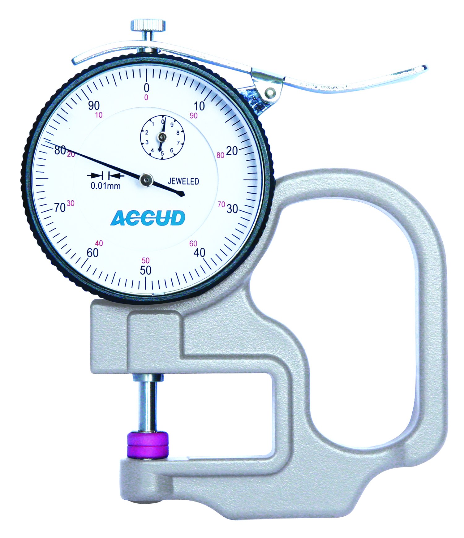 ACCUD 443-010-12 číselníkový tloušťkoměr, oválné - ploché doteky 0-10mm (B type) ( 0.02mm )