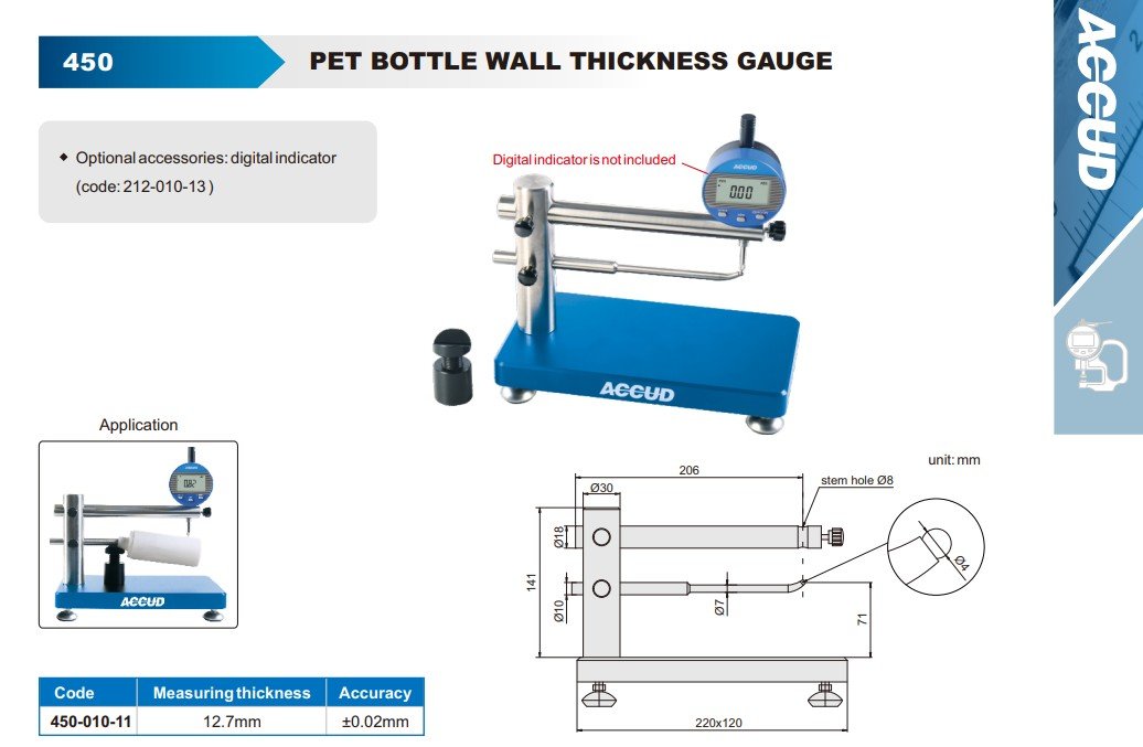ACCUD 450-010-11 číselníkový tloušťkoměr pro měření stěn PET lahví