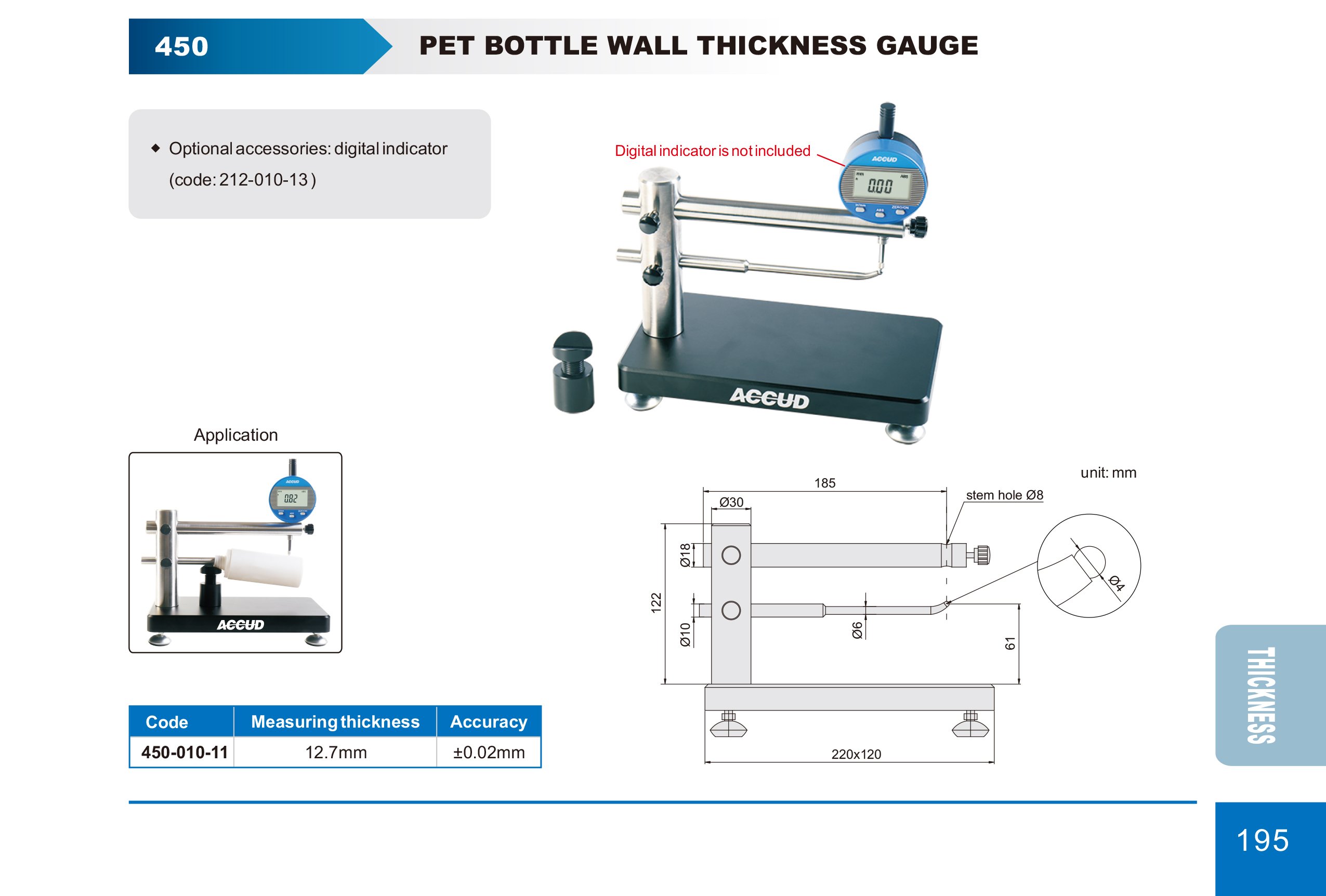 ACCUD 450-010-11 číselníkový tloušťkoměr pro měření stěn PET lahví