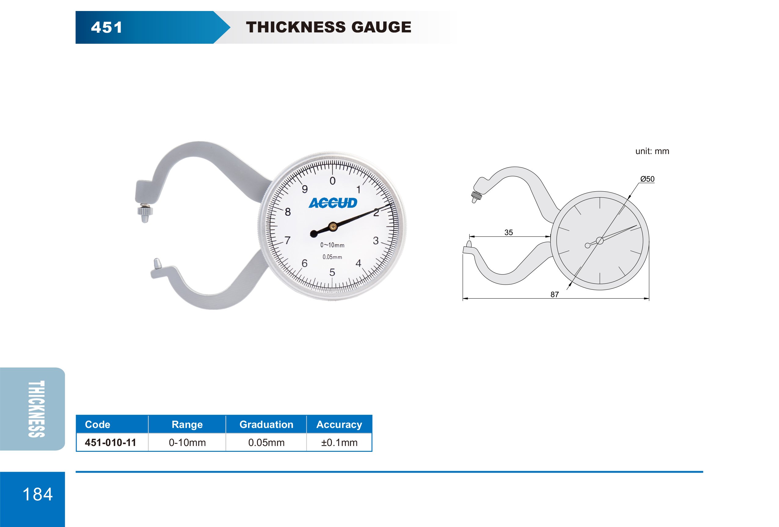 ACCUD 451-010-11 číselníkový tloušťkoměr 0-10mm ( 0.05mm )