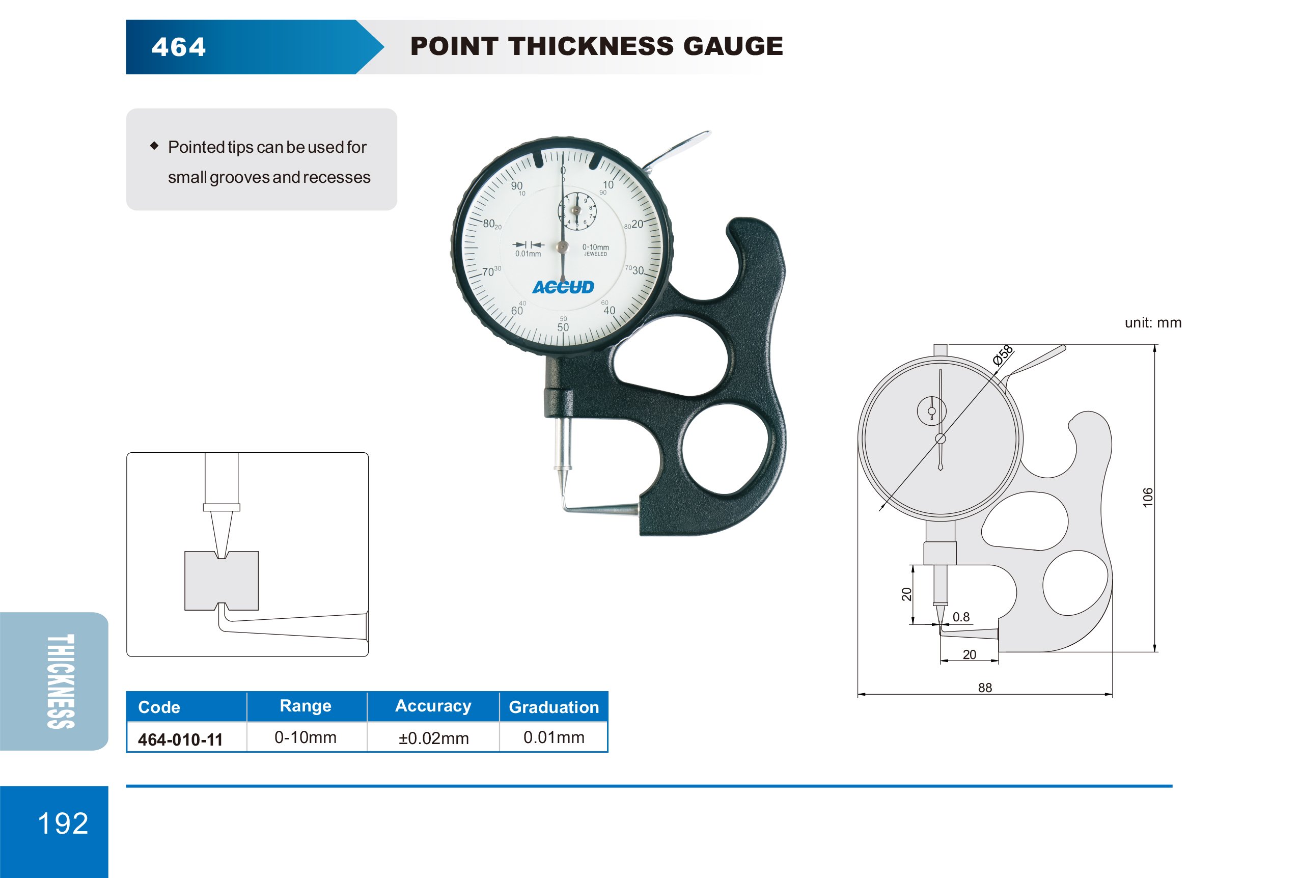 ACCUD 464-010-11 bodový číselníkový tloušťkoměr 0-10mm ( 0.01mm )