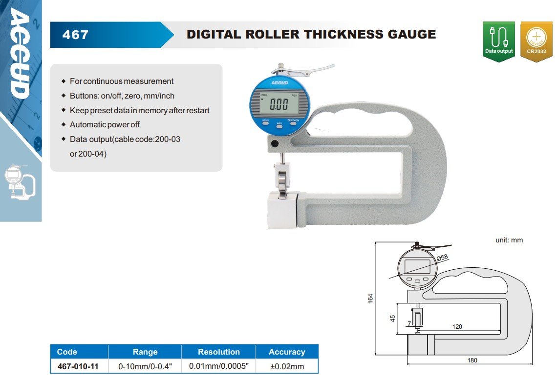 ACCUD 467-010-11 digitální válečkový tloušťkoměr 0-10mm/0-0.4"