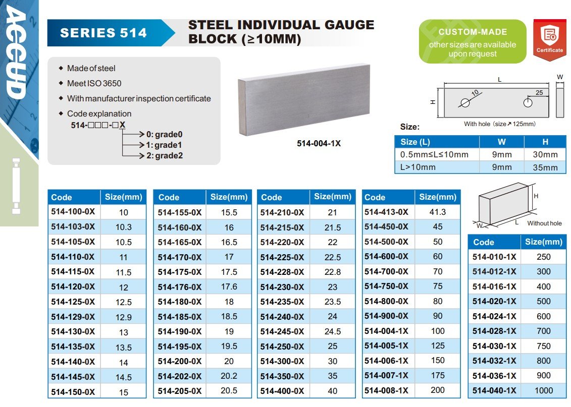 Koncová měrka ocelová Technická specifikace: Vyrobeno z oceli Splňuje ISO 3650 S kalibračním certifikátem Vysvětlení kódu: Rozměry: Dalš… Více