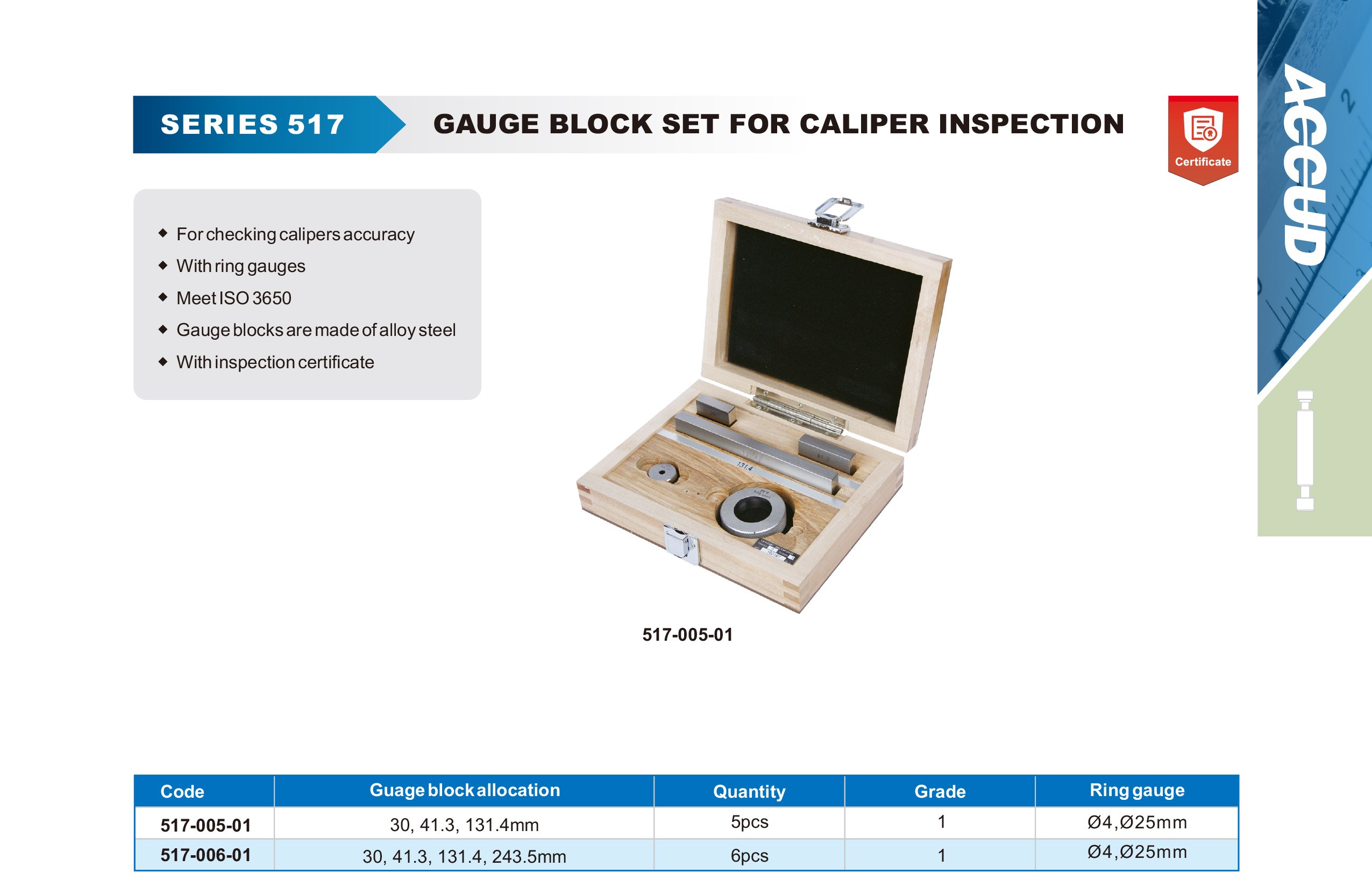 ACCUD 517-006-01 sada měrek pro kontrolu posuvných měřidel, třída př. 1 ( 30mm,41.3mm,131.4mm.243.5mm block gauge, 4mm 25mm nast. kroužek )