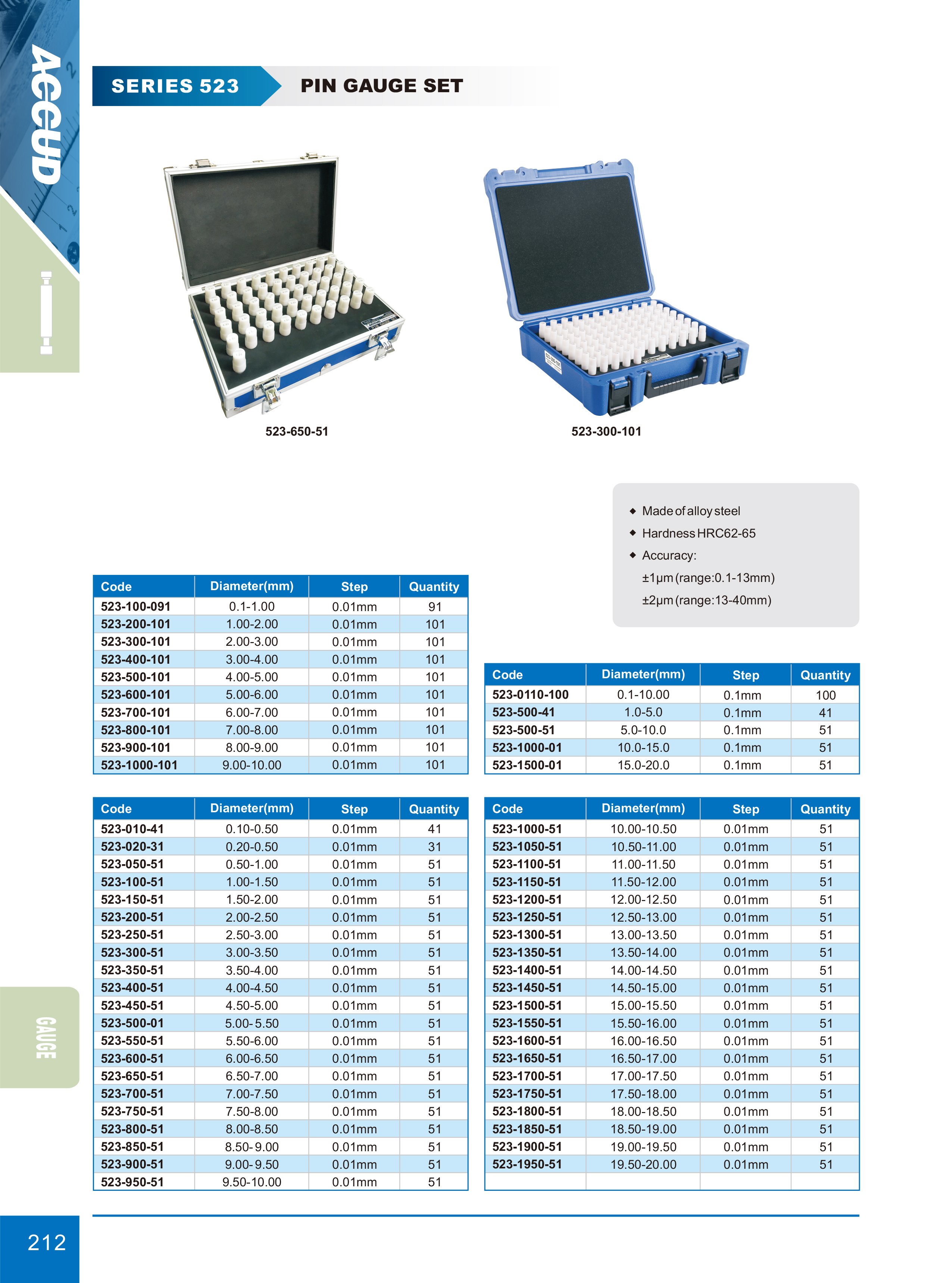ACCUD 523-100-091 sada válečkových měrek 0.1-1.00mm - po 0,01mm / 91ks / přesnost ±1µm