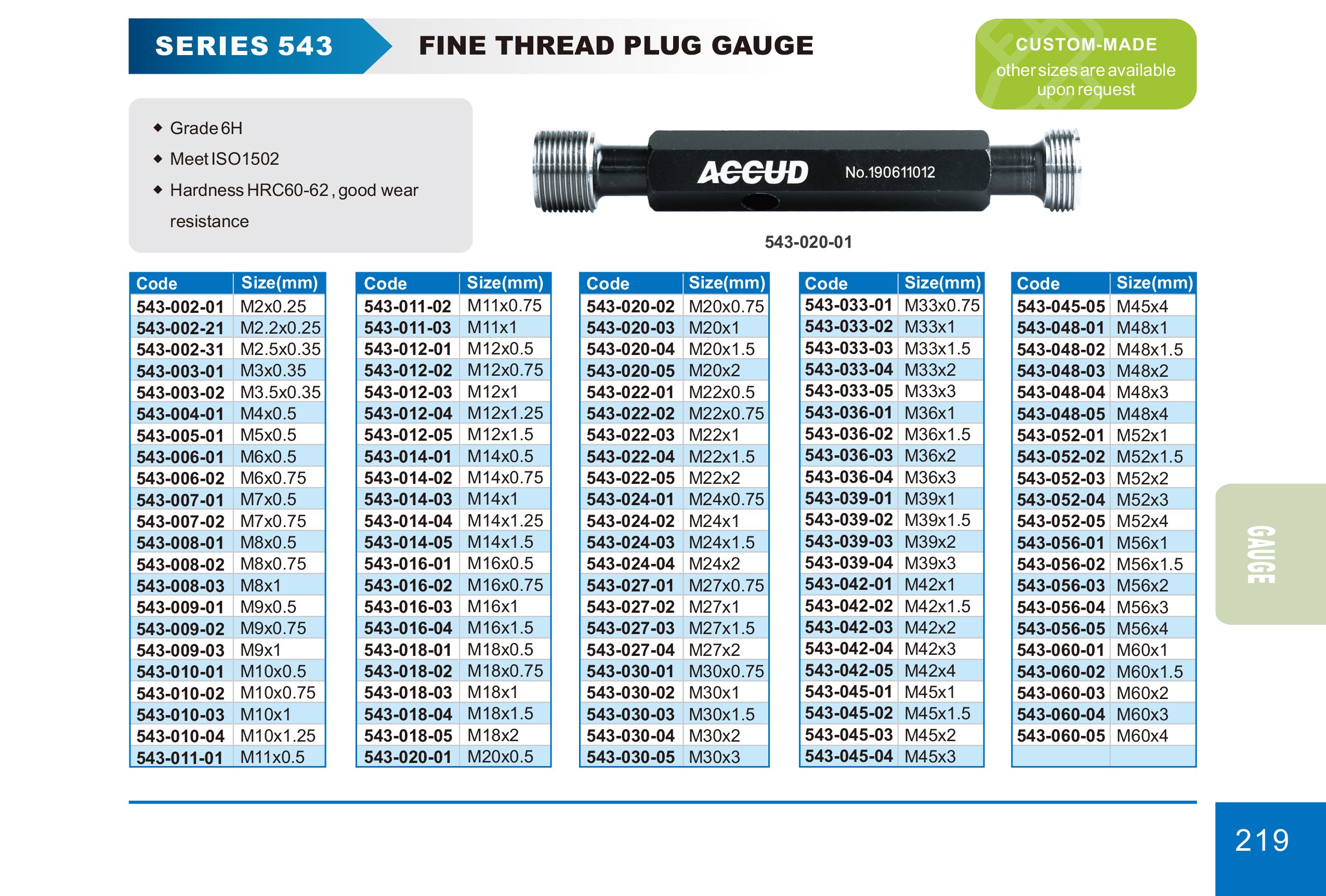 Závitový kalibr oboustranný s dobrou odolností proti opotřebení. Technická specifikace: třída: 6H splňujte ISO 1502 tvrdost: HRC 60-62 Rozměry: Další informace o produktu naleznete v níže přiloženém… Více