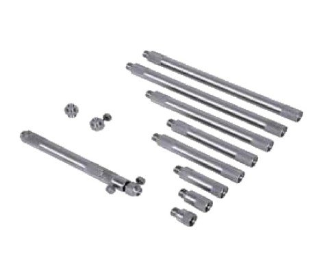 - Prodlužovací tyče (L): 15 mm, 25 mm, 50 mm, 100 mm (3 ks), 150 mm, 200 mm (2 ks)