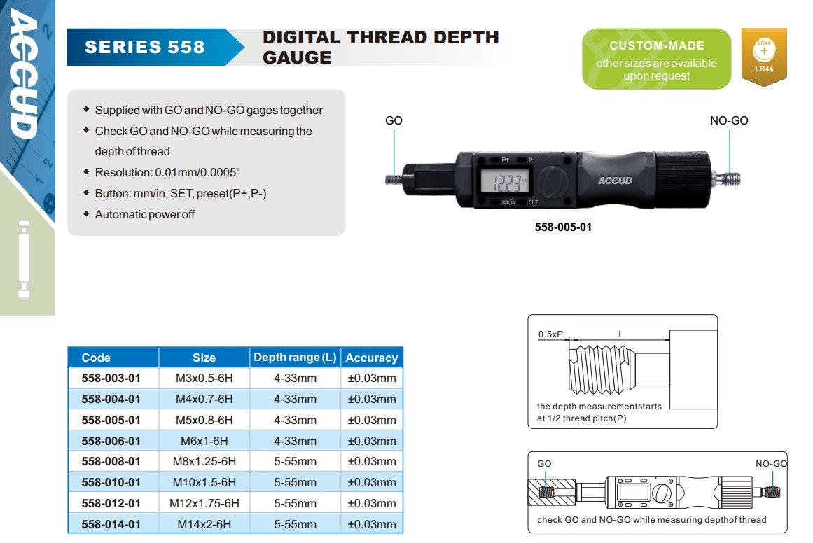 ACCUD 558-010-01 digitální měrka hloubky závitů M10x1.5-6H