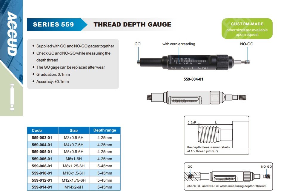 ACCUD 559-014-01 Měrka hloubky závitů M14x2-6H