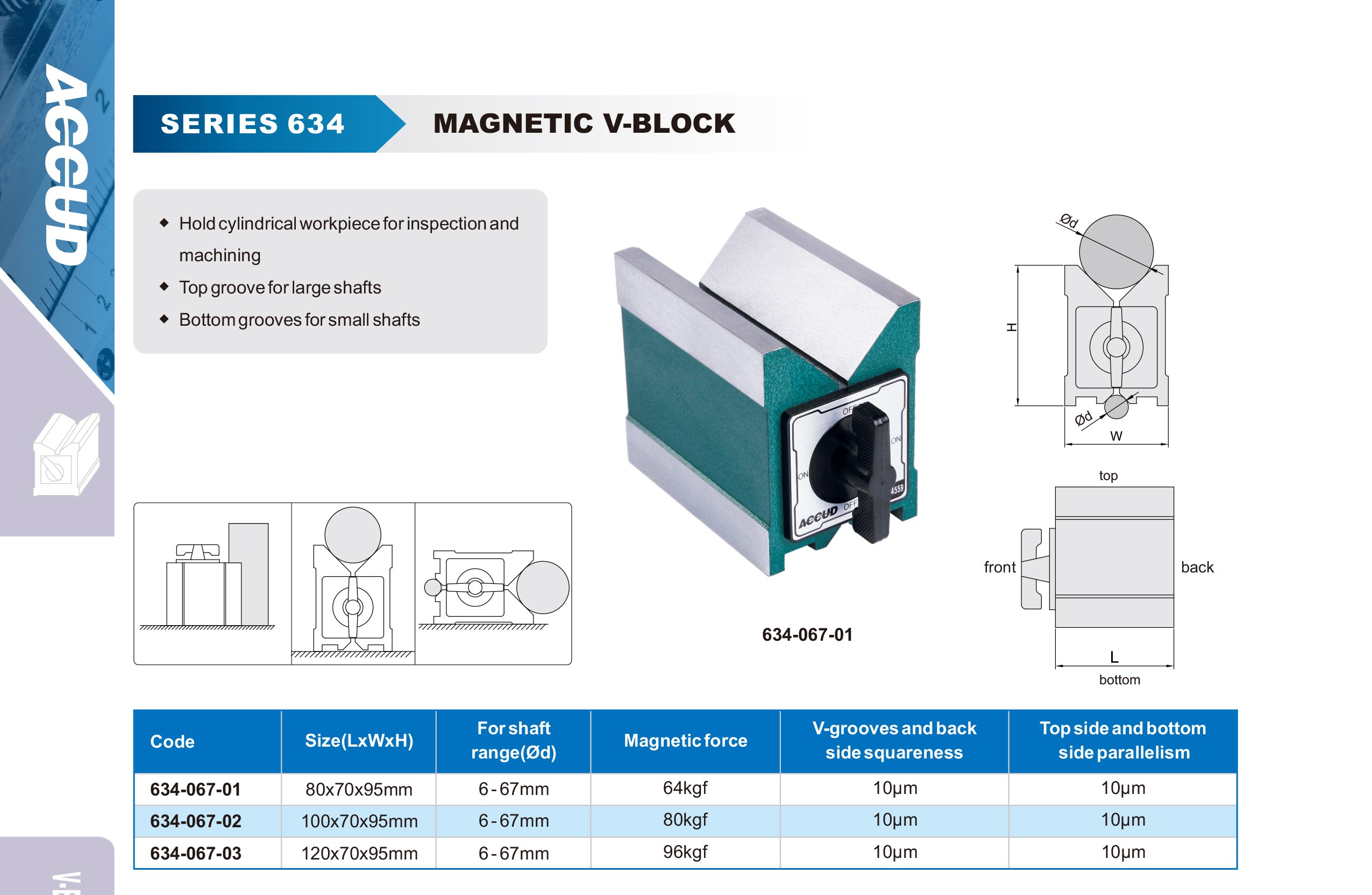 ACCUD 634-067-01 V-BLOCK - prizmatická podložka magnetická 80x70x95mm ( 1ks )