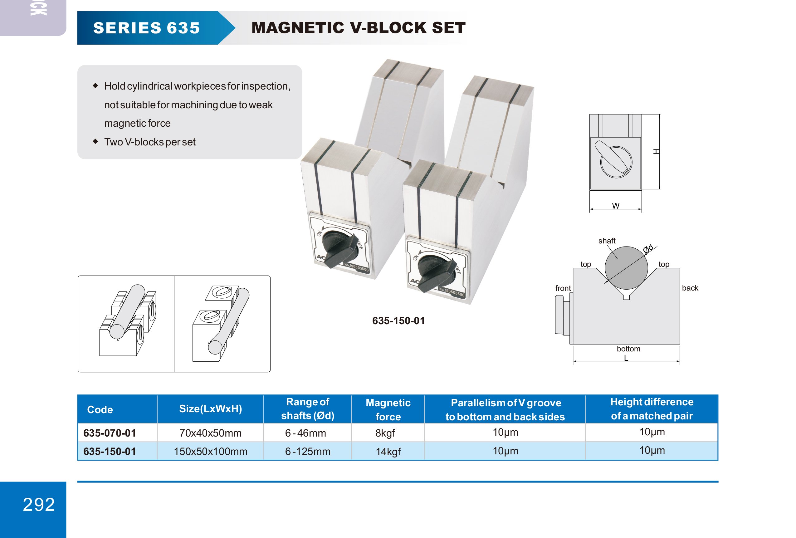 - Drží válcové obrobky pro kontrolu, není vhodný pro obrábění kvůli slabé magnetické síle.