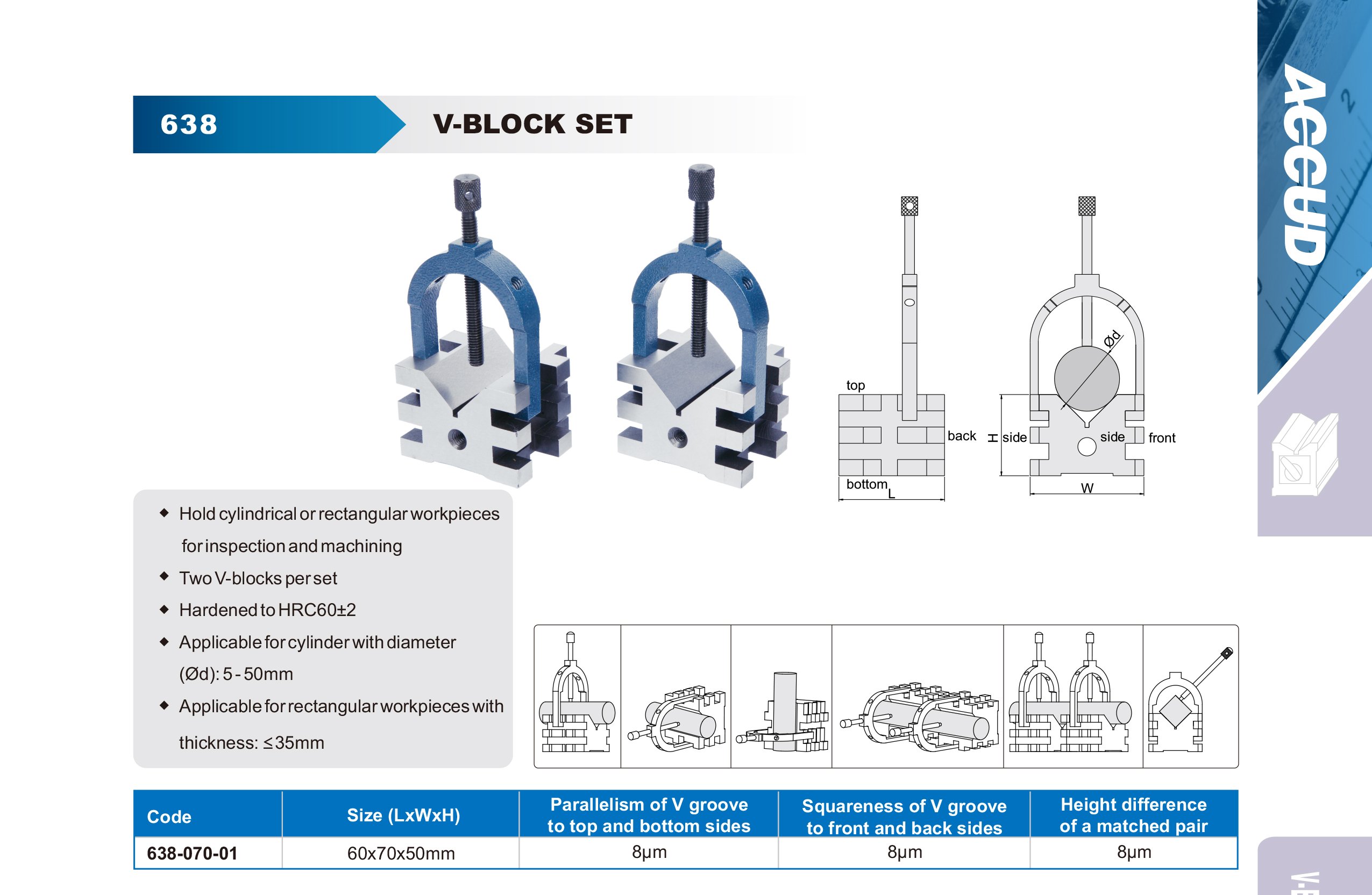 ACCUD 638-070-01 V-BLOCK - prizmatické podložky ocelové s třmenem 60x70x50mm ( 1 pár )