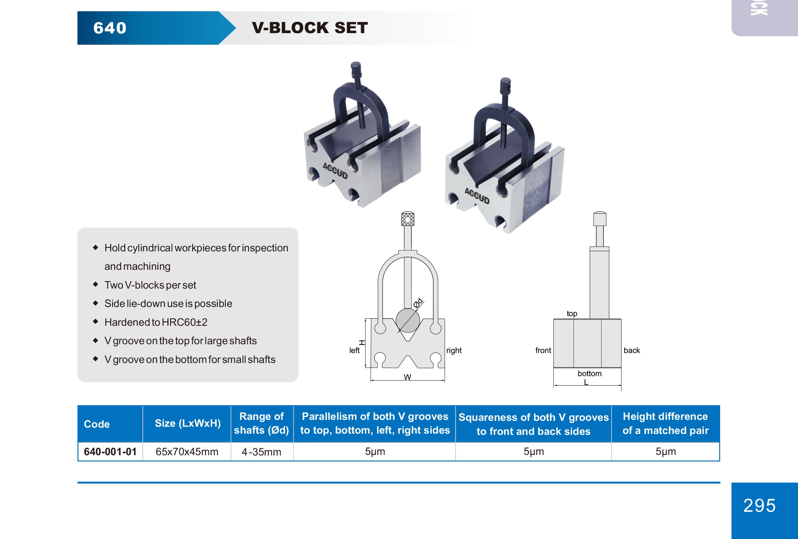 ACCUD 640-001-01 V-BLOCK - prizmatické podložky ocelové s třmenem 65x70x45mm ( 1 pár )