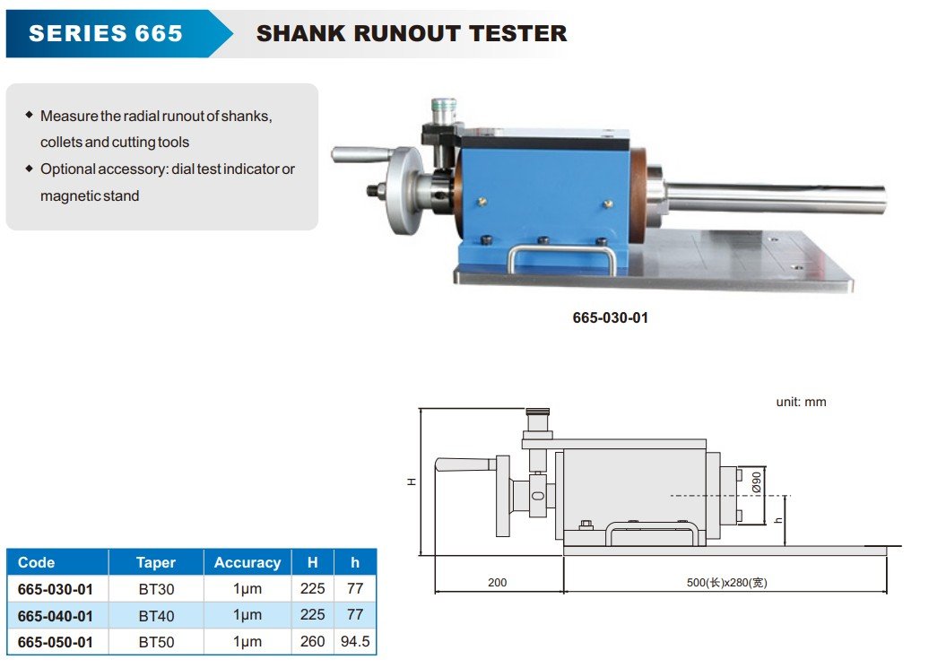 Tester házivosti stopky slouží k měření radiální házivosti stopek, kleštin a řezných nástrojů a umožňuje rychlou kontrolu přesnosti upnutí před obráběním.