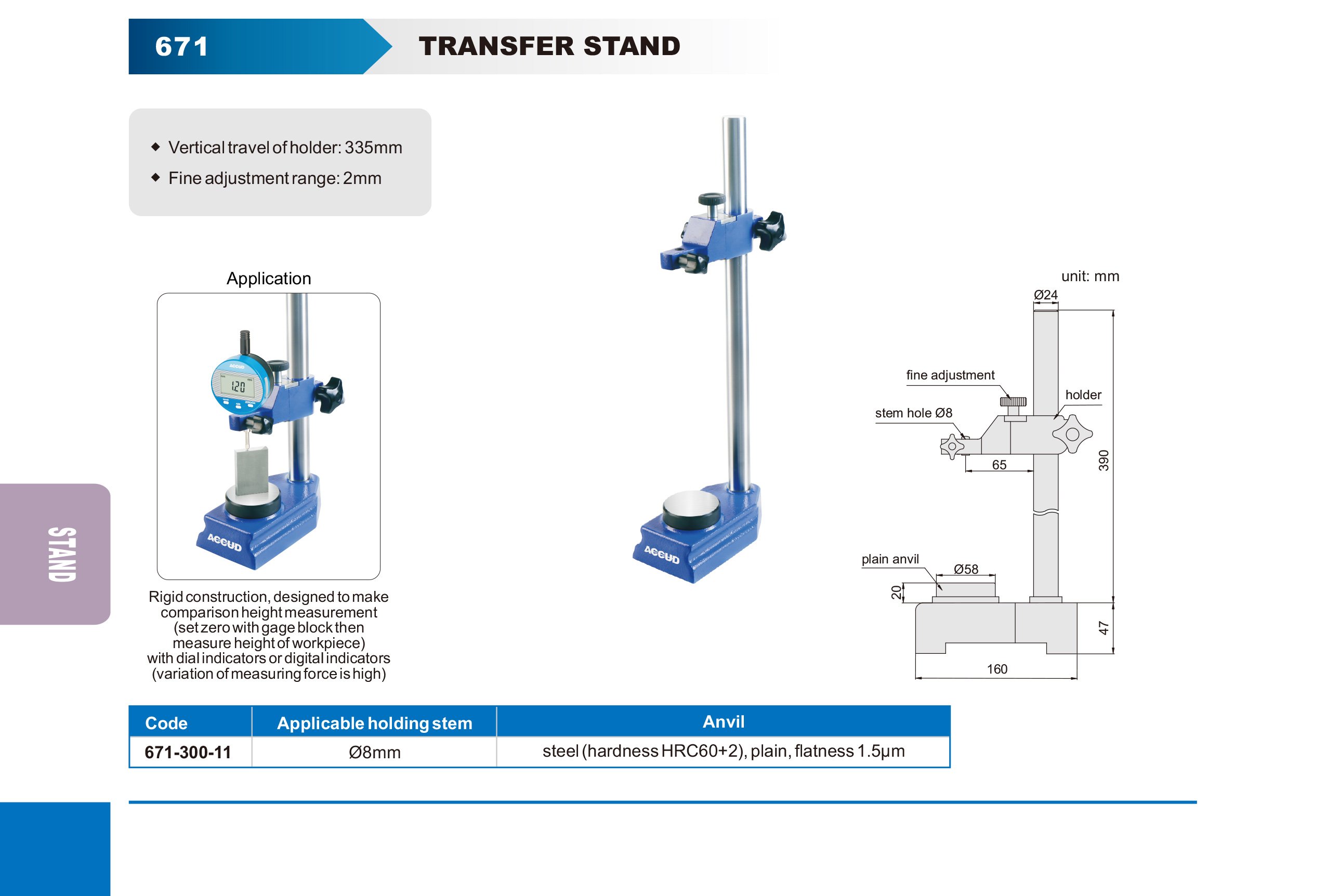 ACCUD 671-300-11 stojánek pro číselníkové úchylkoměry se stabilní základnou 390mm