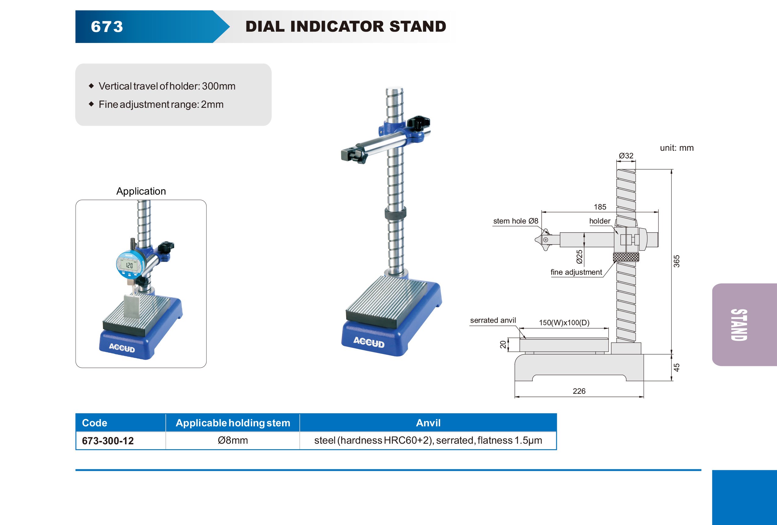 ACCUD 673-300-12 stojánek pro číselníkové úchylkoměry se stabilní základnou 365mm
