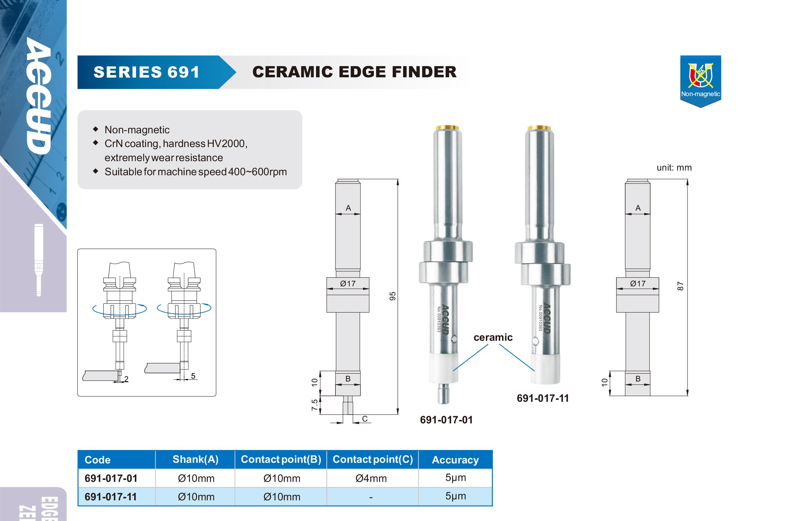 Keramický mechanický najížděcí trn Technická specifikace: Dřík: Ø10mm Kontaktní bod (B): Ø10mm Přesnost: 5µm Nemagnetický CrN povlak, tvrdost HV2000, extrémně odolná proti opotřeben… Více