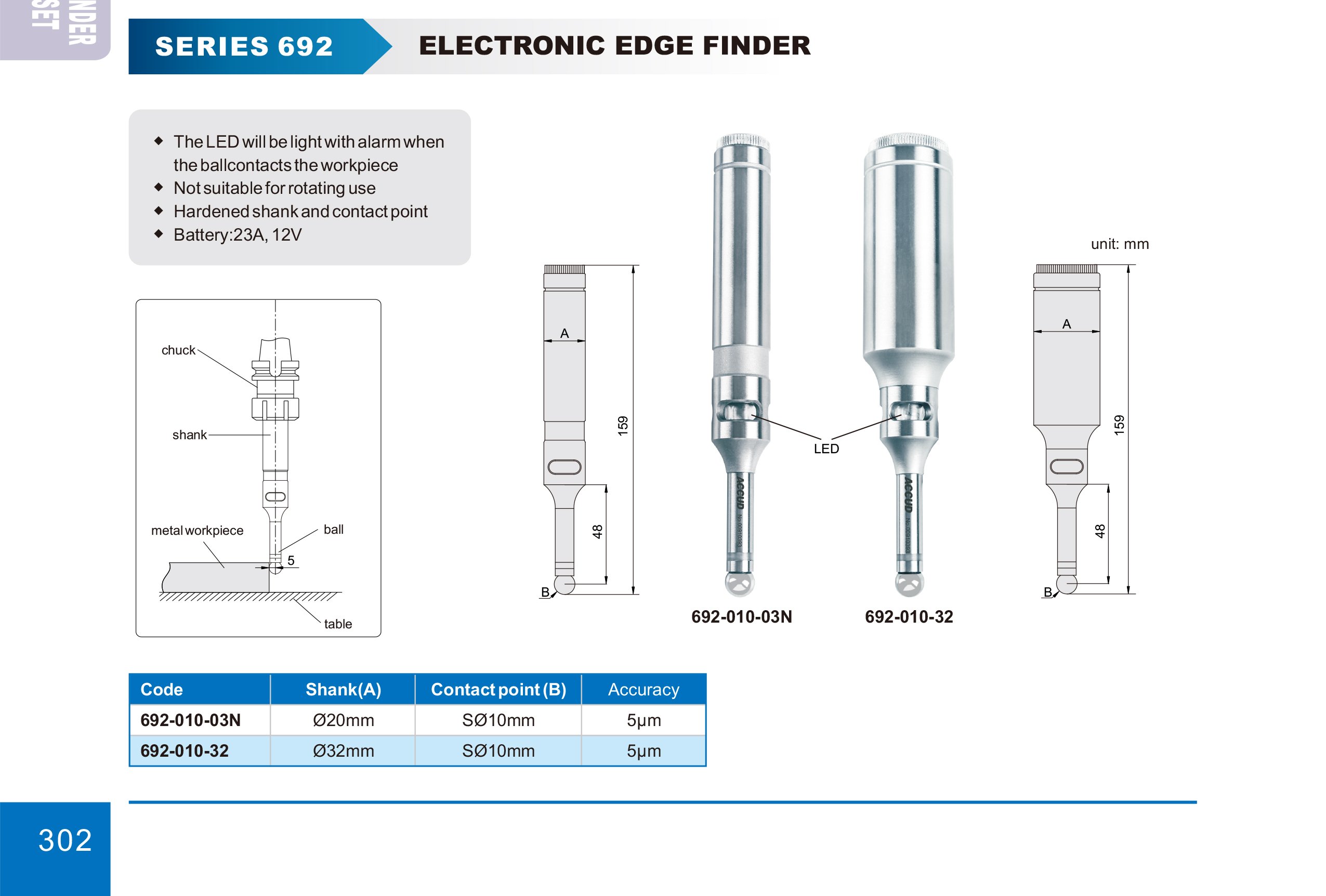 Elektronický najížděcí trn Technická specifikace: Dřík: Ø32mm  Kontaktní bod: Ø10mm Přesnost: 5µm Když se kulička dotkne obrobku, rozsvítí se LED dioda Není vhodné pro rotační… Více