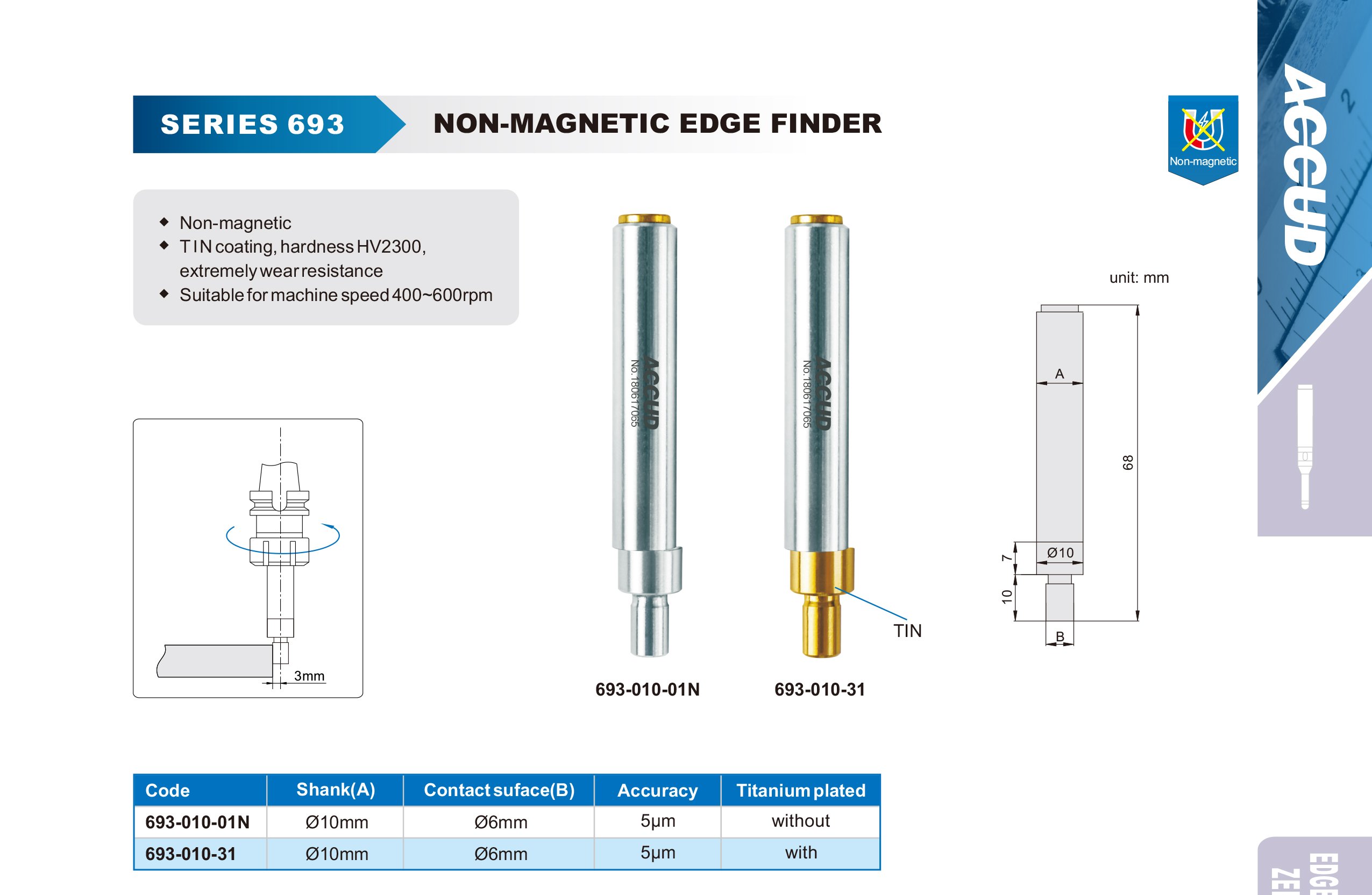 Mechanický najížděcí trn Technická specifikace: Dřík: Ø10mm Kontaktní bod: Ø6mm Přesnost: 5µm Nemagnetický Povlak TIN, tvrdost HV2300, extrémně odolná proti opotřebení Vhodné… Více