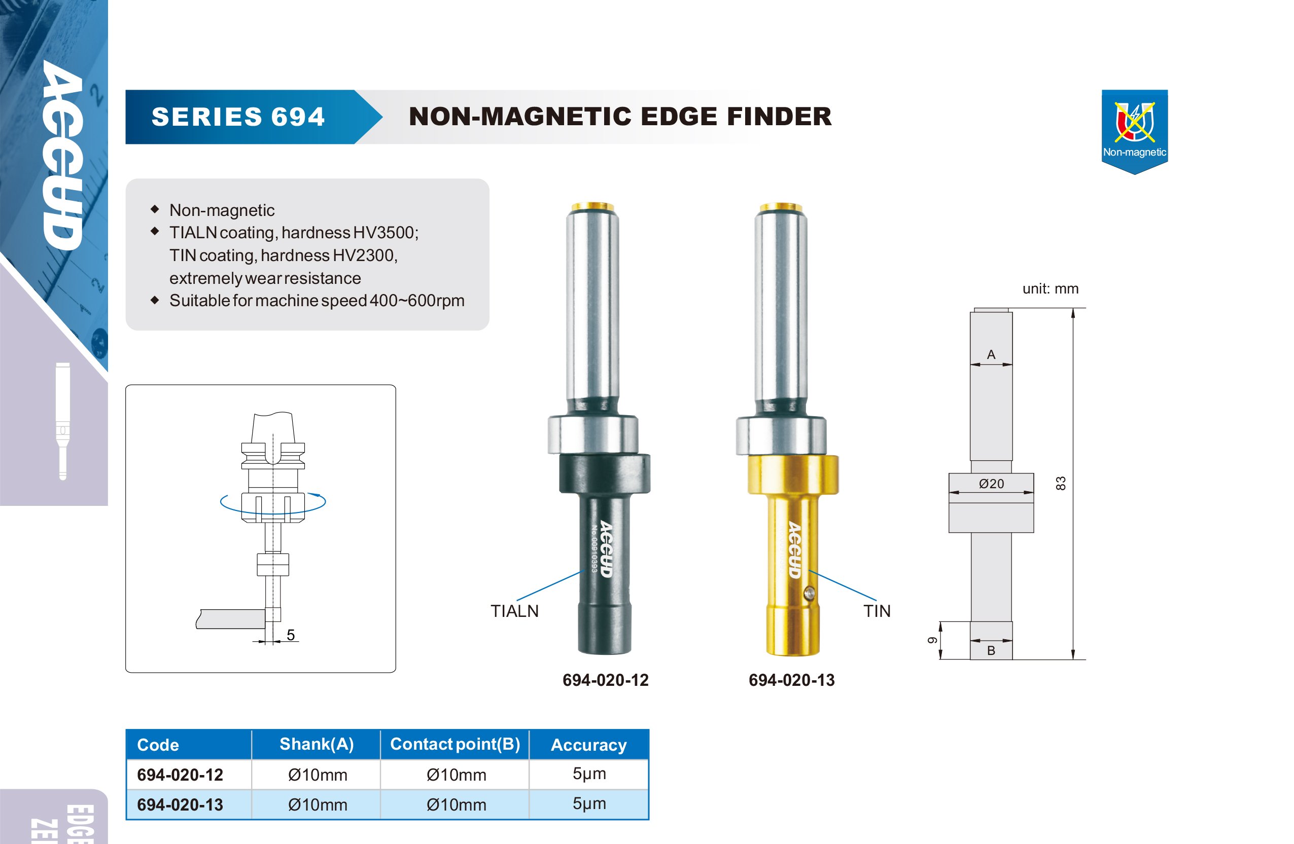 ACCUD 694-020-13 nemagnetický mechanický najížděcí trn TiN 10mm ( φ20mm )