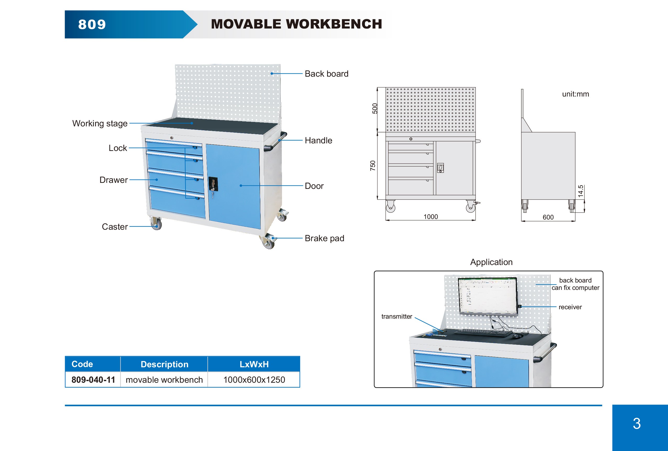 ACCUD 809-040-11 pojizdný pracovní stůl - měřící stanice 1000x600x800mm
