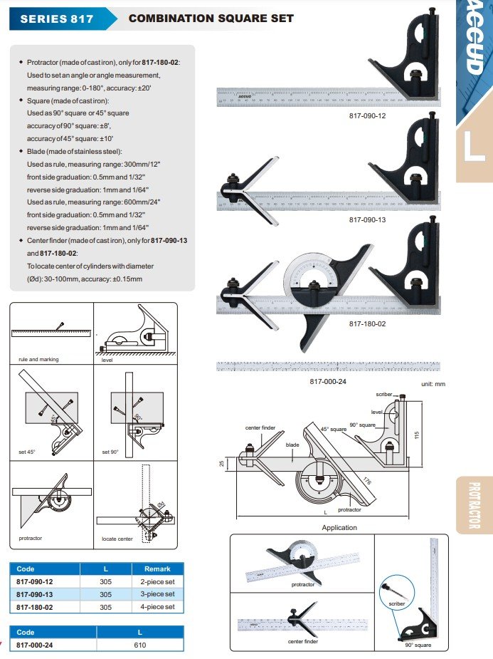 ACCUD 817-090-13 Úhloměr universální COMBI, 3 dílný set