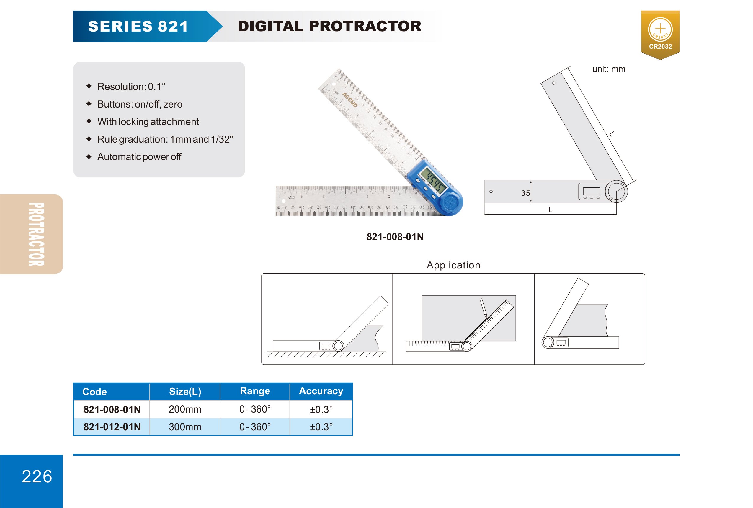 ACCUD 821-008-01N digitální úhloměr 200mm / 0-360° ( 0.1° )