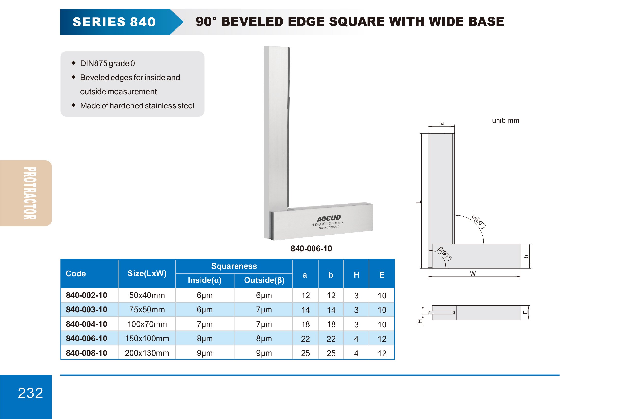 ACCUD 840-002-10 90° nožový úhelník s rozšířenou základnou 50x40mm ( DIN875 třída 0 )