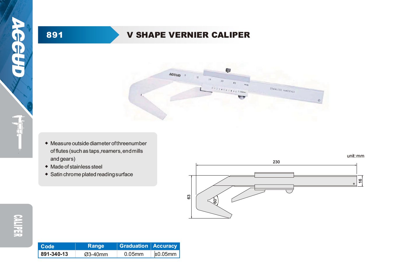 ACCUD 891-340-13 analogové posuvné měřítko tvaru V