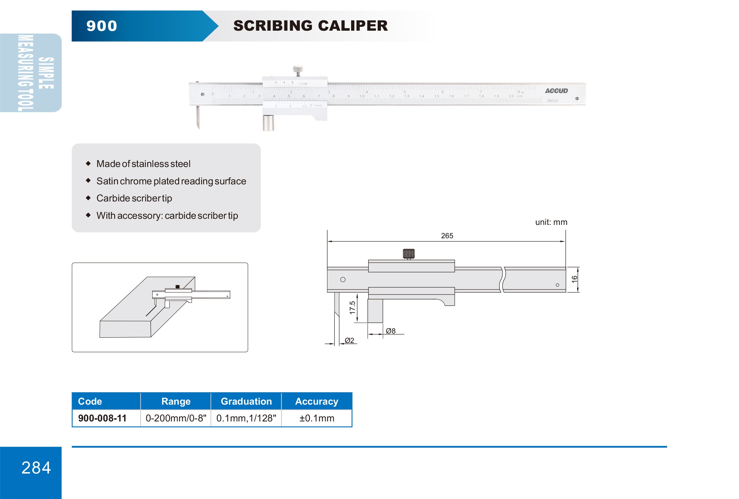 ACCUD 900-008-11 posuvné měřítko pro orýsování 0-200mm/0-8" 0.1mm/1/128"