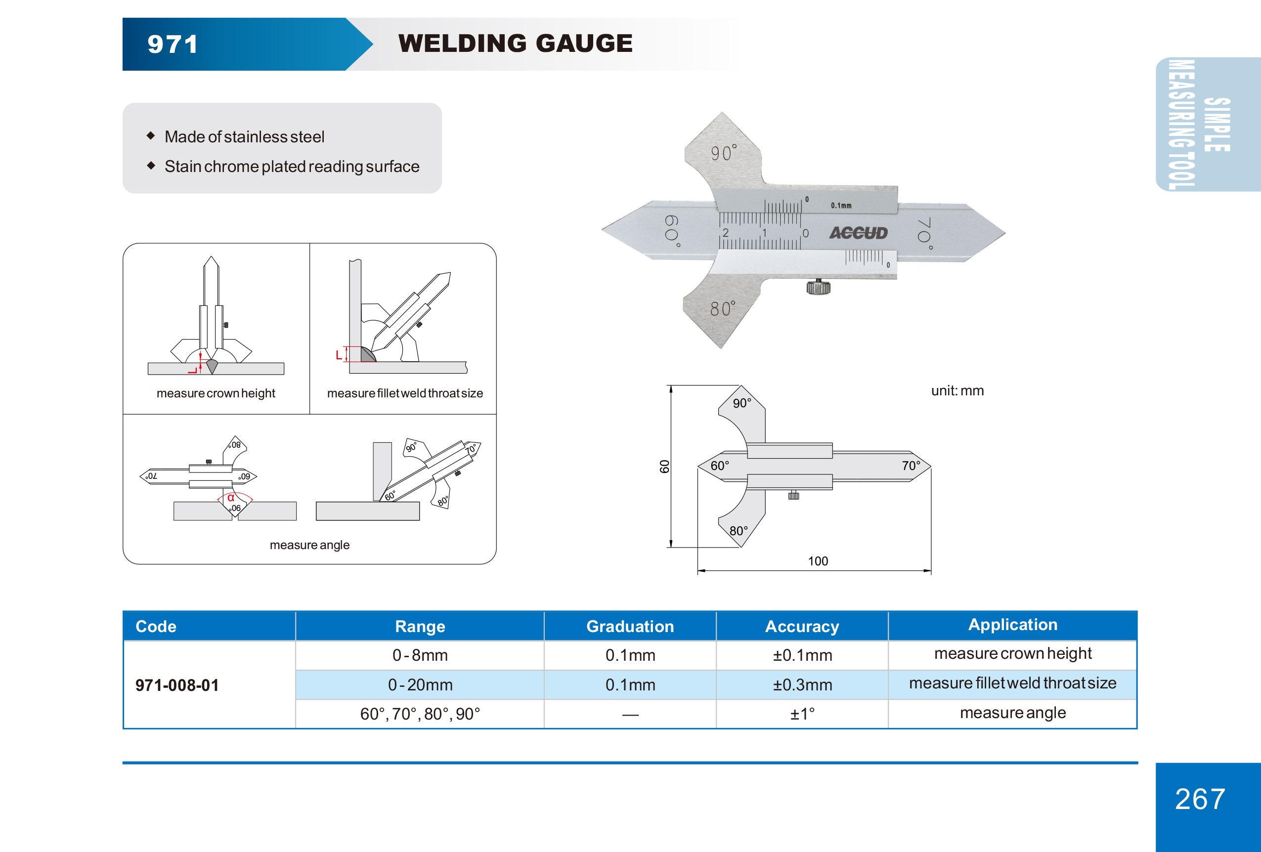 ACCUD 971-008-01 měrka pro svářeče 0 -10mm / 0-20mm / 60; 70; 80; 90°