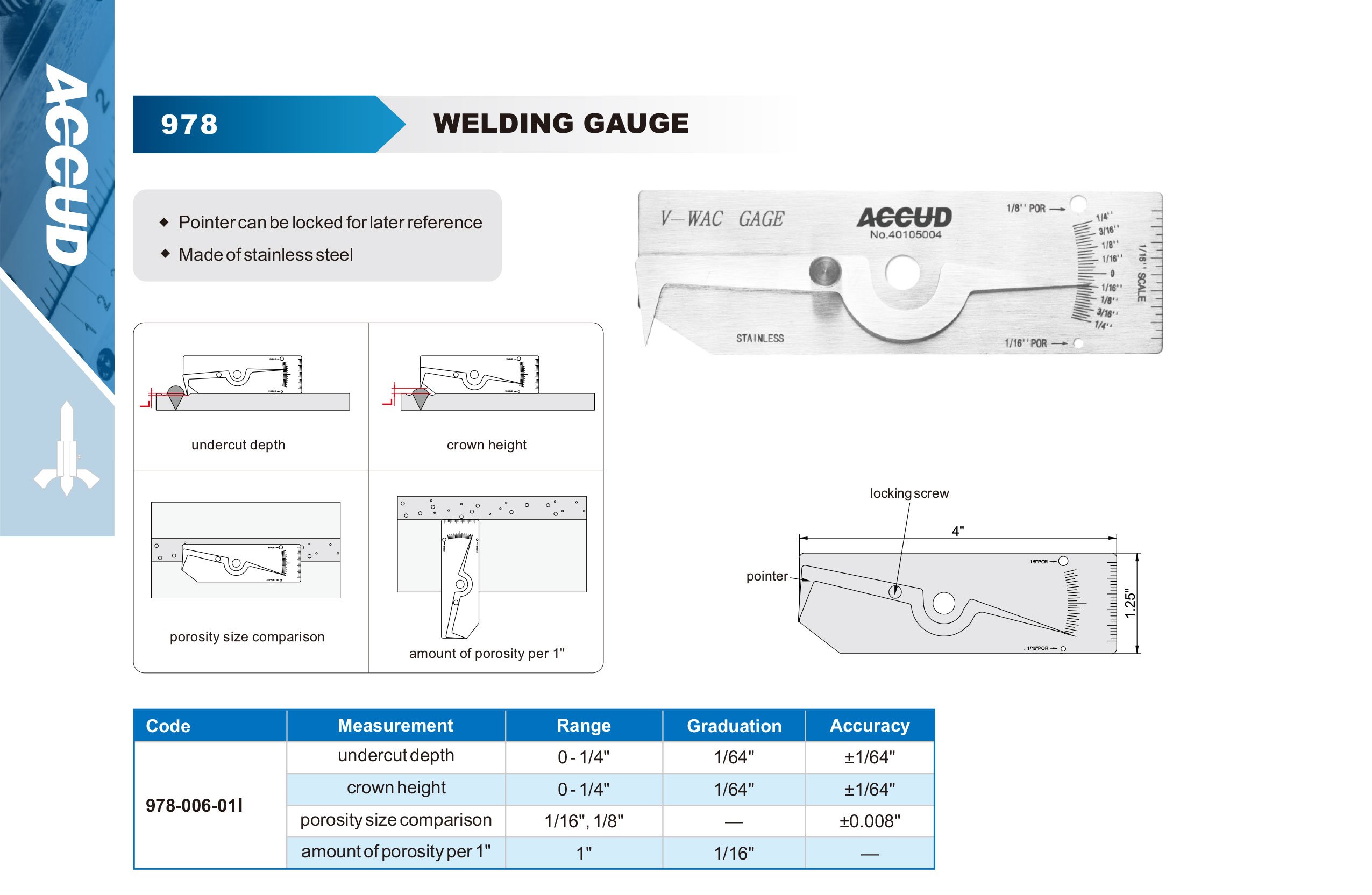 Měrka pro svářeče s možností uzamčení ukazatele pro pozdější použití.