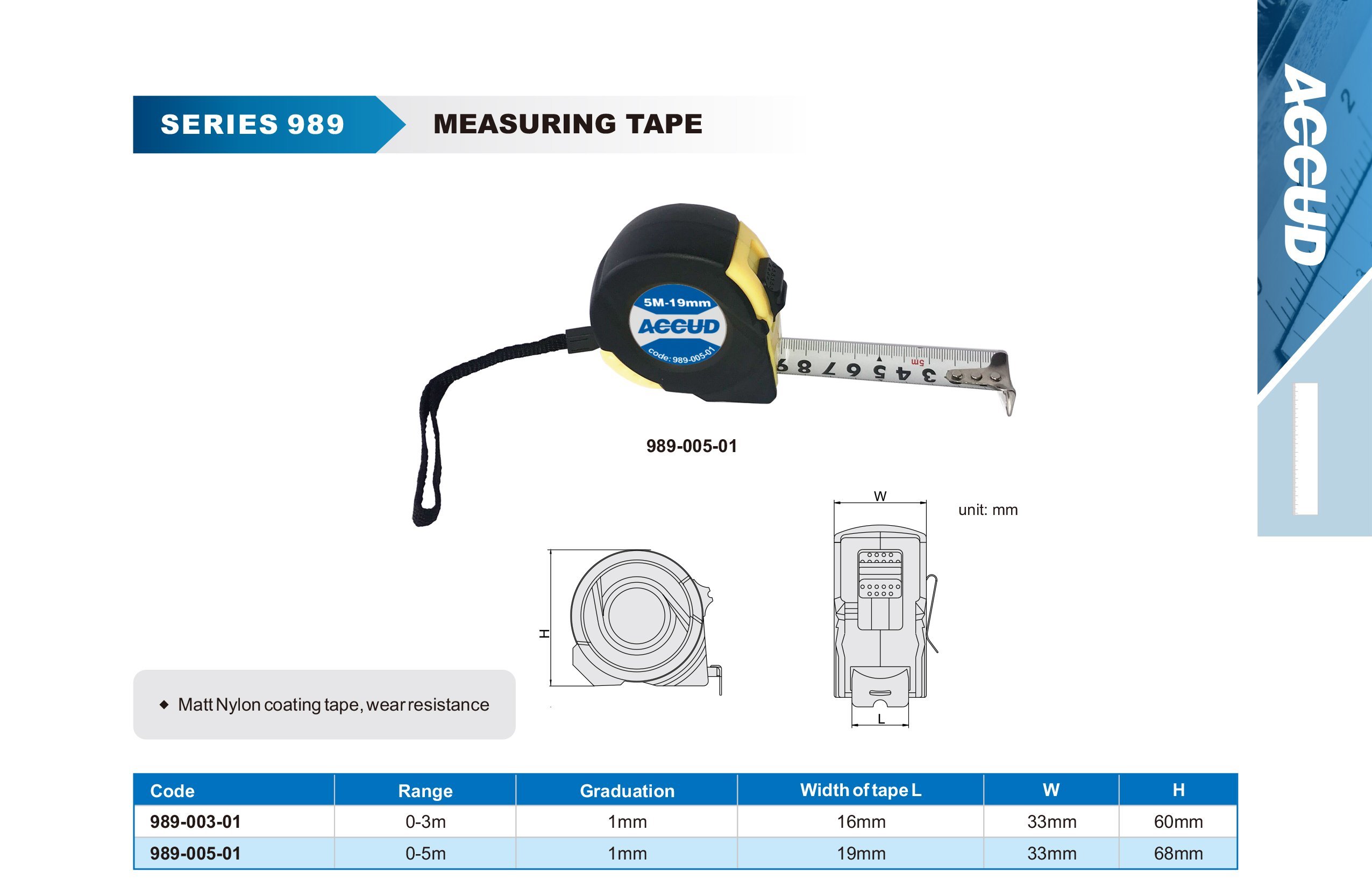 ACCUD 989-005-01 svinovací metr 0-5m ( W19mm ) stupnice 1mm