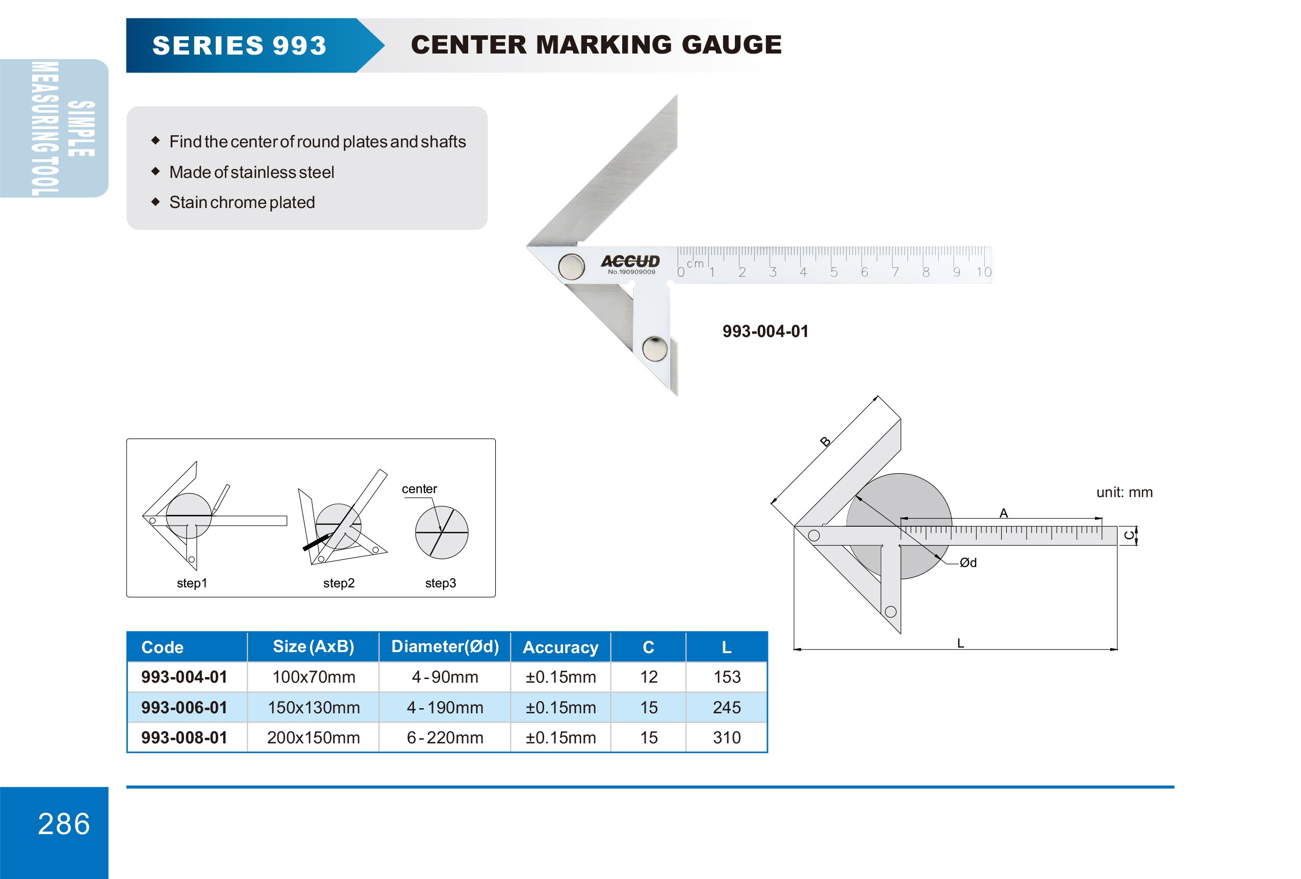 Pravítko středící Technická specifikace: Rozměr: 300x180mm Přesnost: ±0.15mm Nalezení středu kruhových desek a hřídelí Vyrobeno z nerezové oceli Chromovaný povrch Rozměry: Schéma měření:… Více