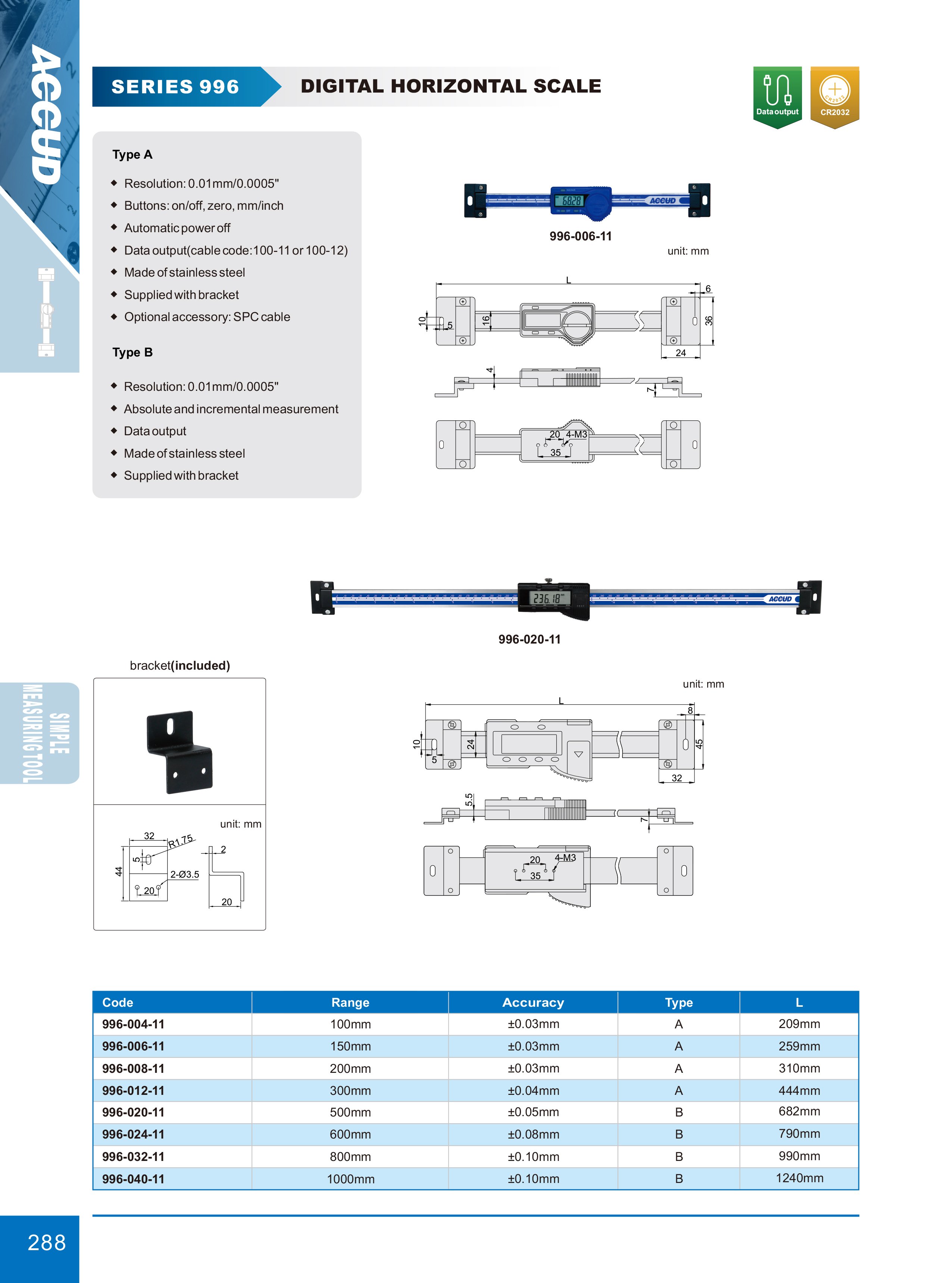 ACCUD 996-020-11 digitální horizontální měřítko 500mm/20" ( 0.01mm/0.0005" )