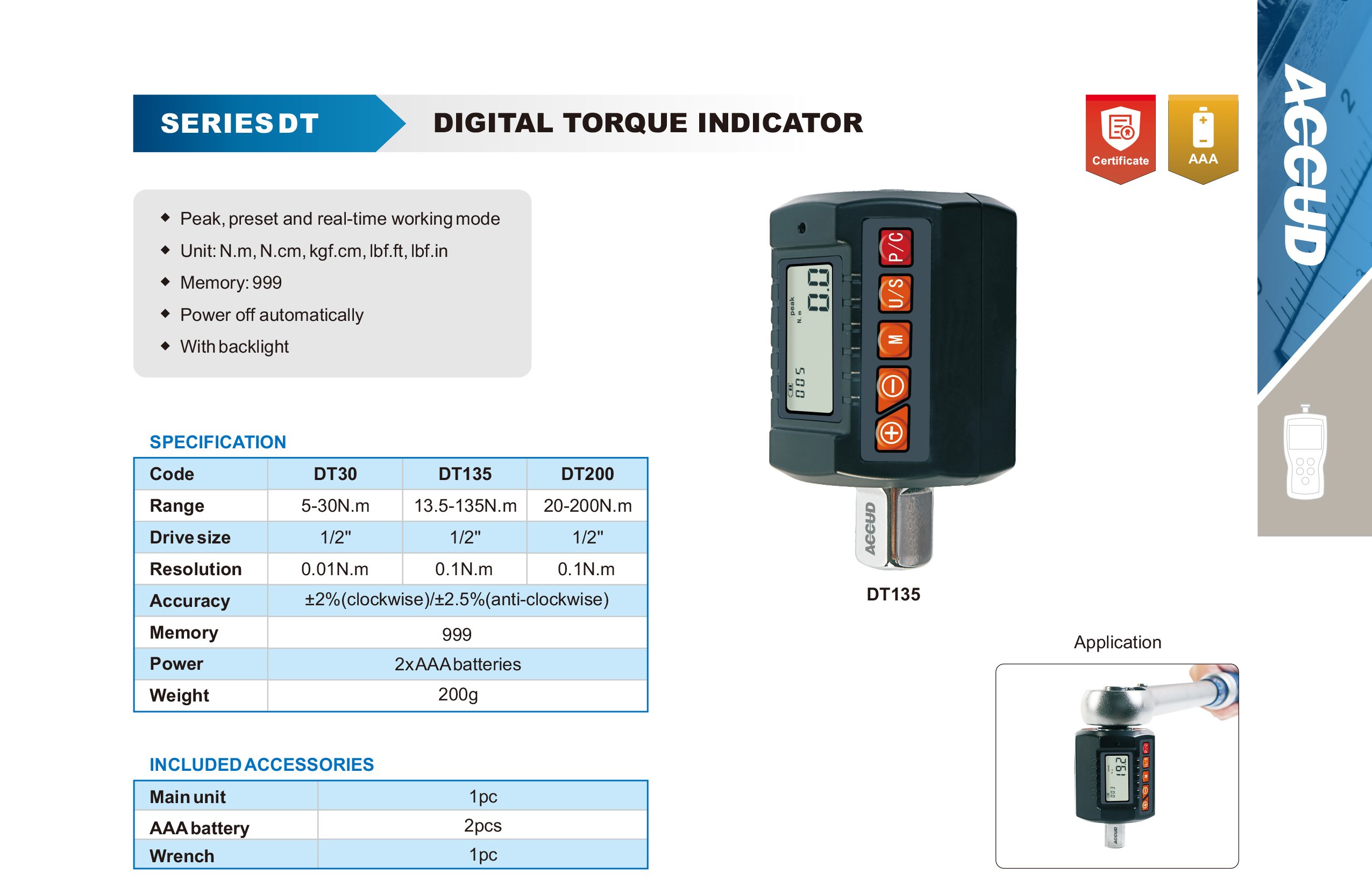 ACCUD DT200 digitální ukazatel točivého momentu 20-200N.m ( 0.1N.m )