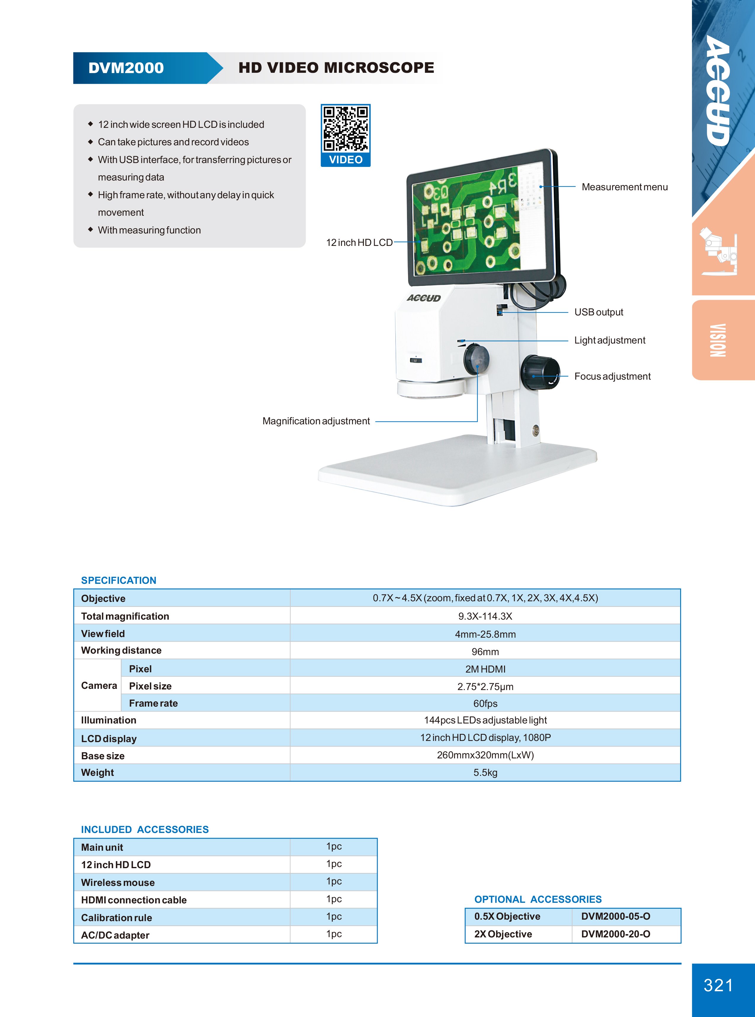 - Objektiv: 0.7X ~ 4.5X (zoom, fixed at 0.7X, 1X, 2X, 3X, 4X,4.5X)