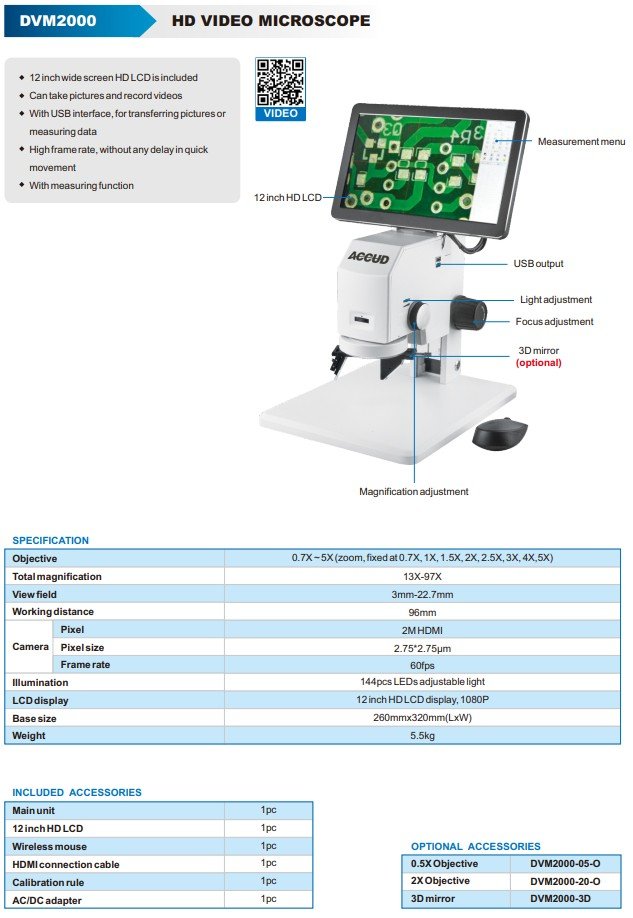 - Objektiv: 0.7X ~ 5X (zoom, fixed at 0.7X, 1X, 1.5X, 2X, 2.5X, 3X, 4X,5X)