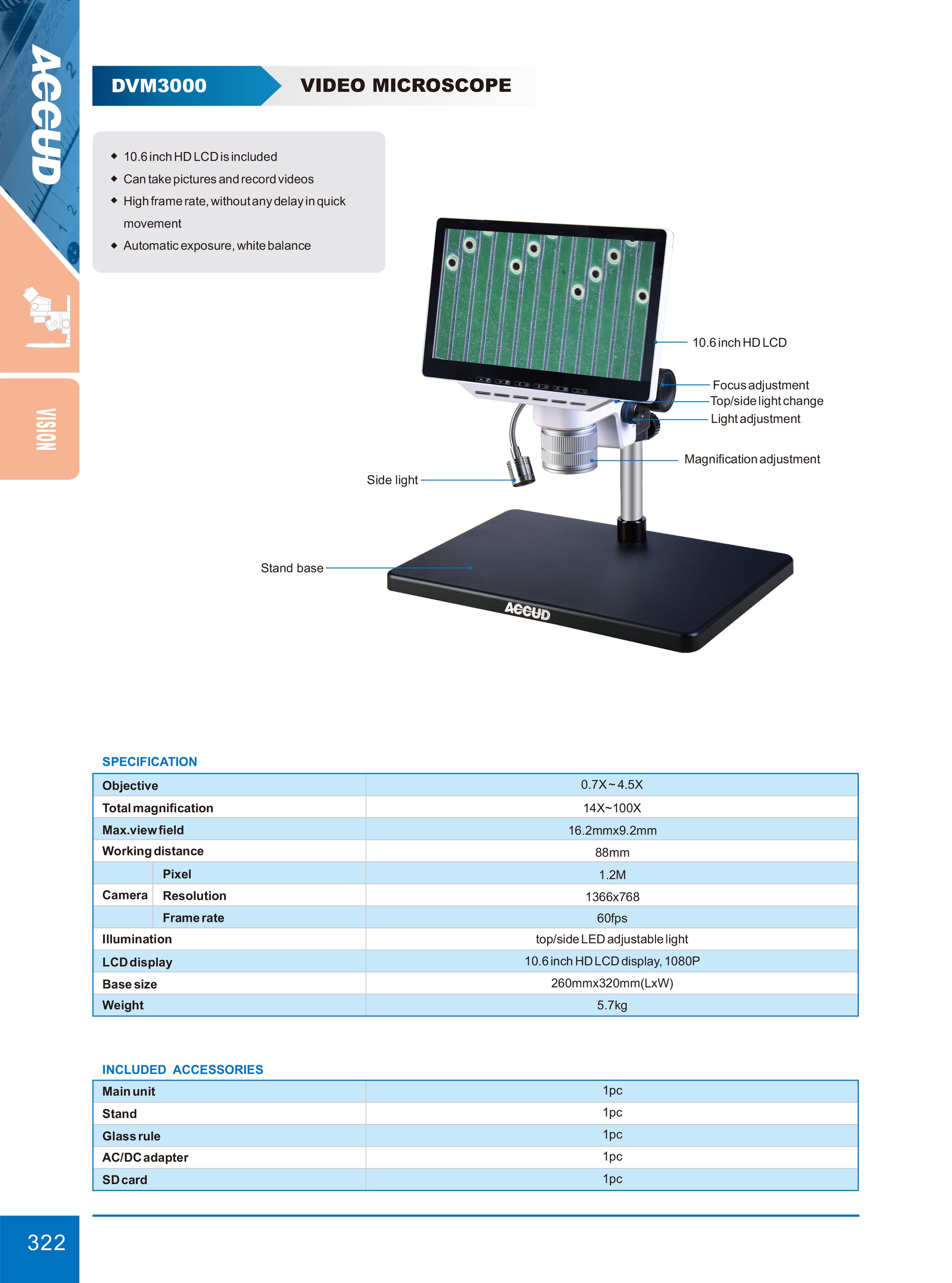 ACCUD DVM3000 HD video mikroskop 0.7-4.5x