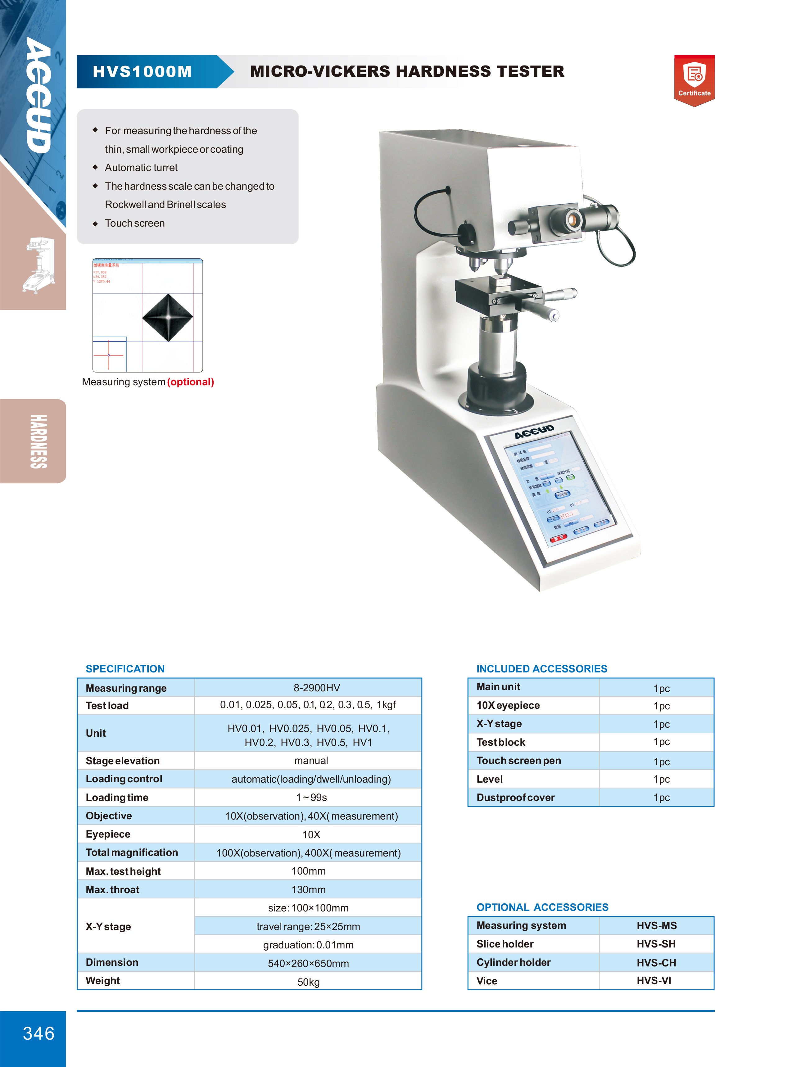 ACCUD HVS1000M digitální MICRO-VICKERS tvrdoměr (s dotykovou obrazovkou )