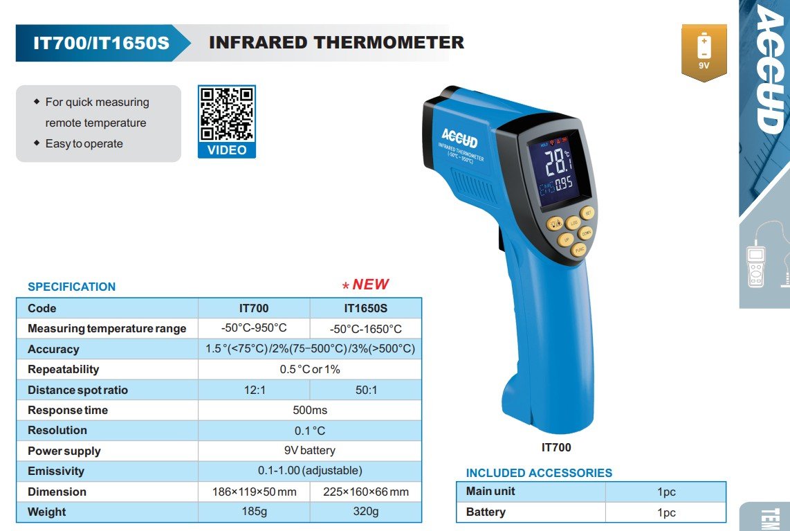ACCUD IT700 infračervený teploměr ( rozsah -50 - 950°C )