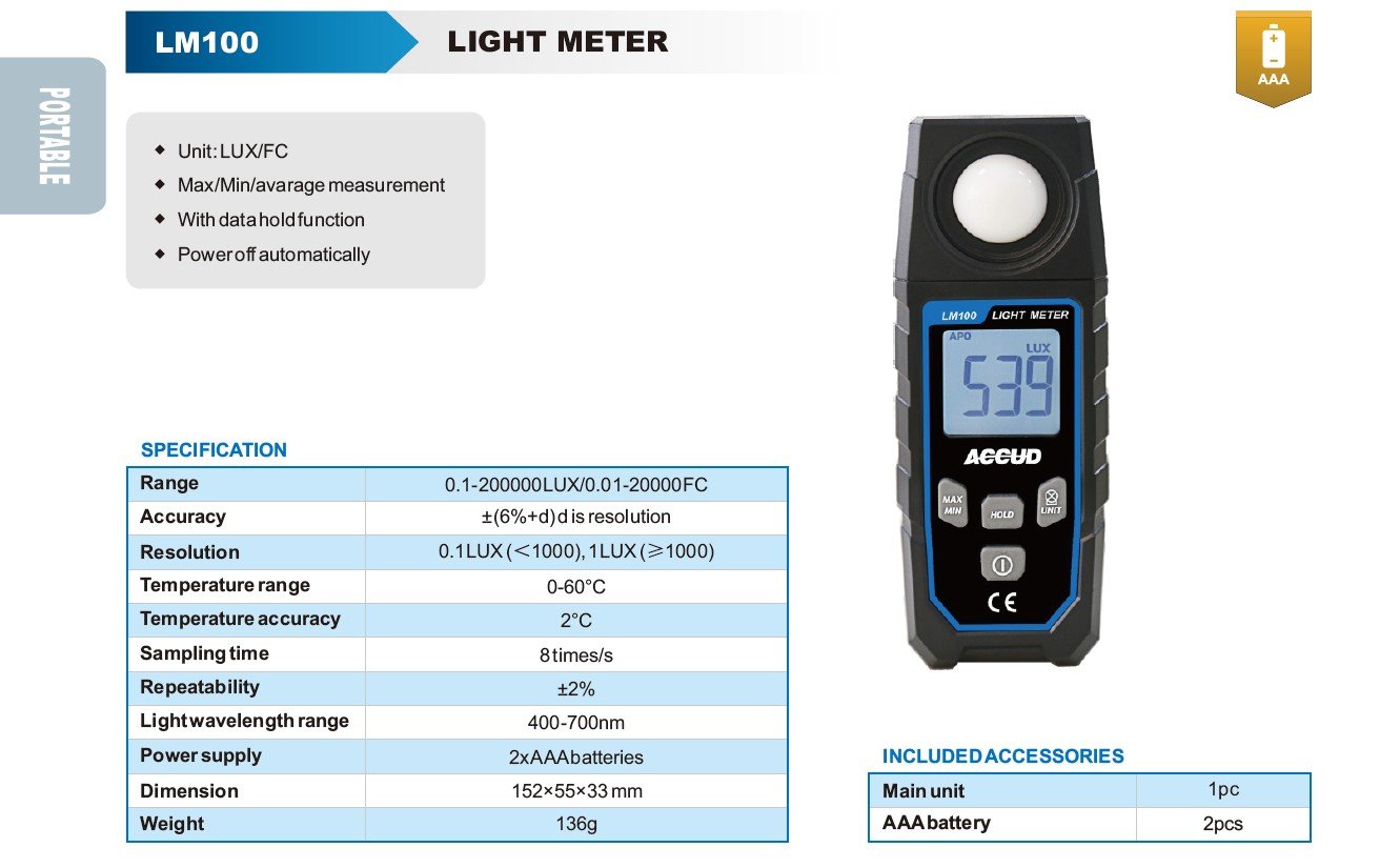 ACCUD LM100 měřič světla ( rozsah 0.1-200000LUX / 0.01-20000FC )