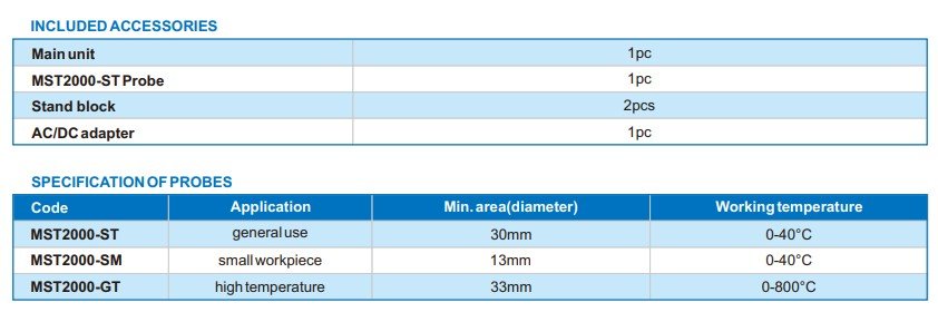 - MST2000-GT- Aplikace: vysoká teplota, min. plocha (průměr): 33mm, Pracovní teplota: 0-800°C