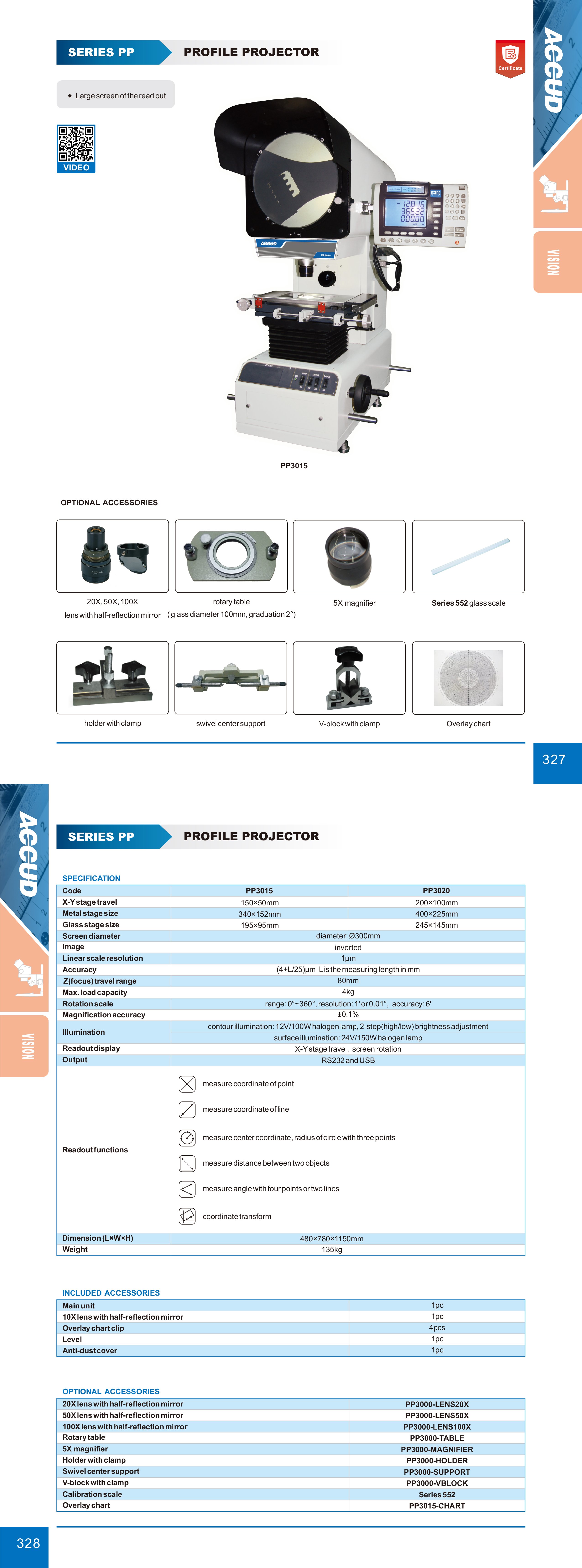 Profilový projektor s velkou obrazovkou čtecího zařízení. Technická specifikace: X-Y základna: 200×100mm Velikost kovového podstavce: 400×225mm Velikost skleněného podstavce: 245×145mm Průměr obrazovky: … Více
