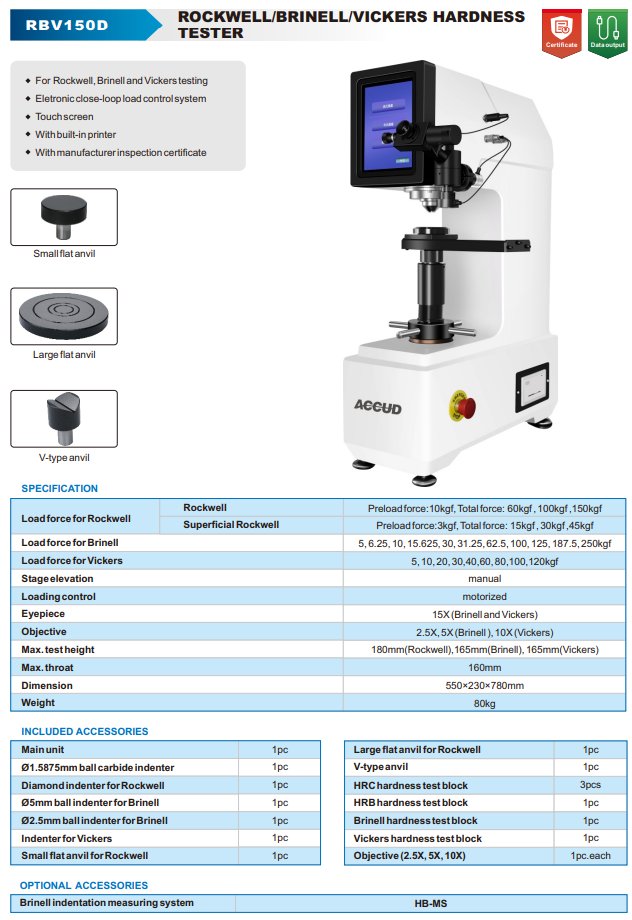 ACCUD RBV150D tvrdoměr BRINELL / ROCKWELL / VICKERS