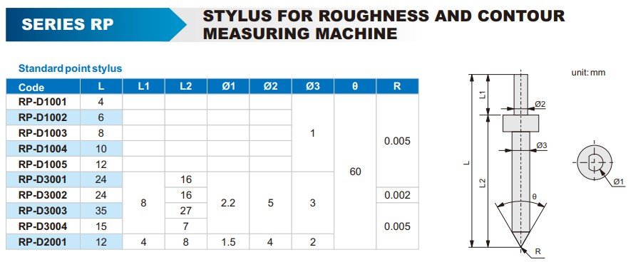 Standardní měřicí hroty série RP jsou určeny pro přesné měření drsnosti povrchu a kontur ve spojení s přístroji pro měření drsnosti a tvaru.